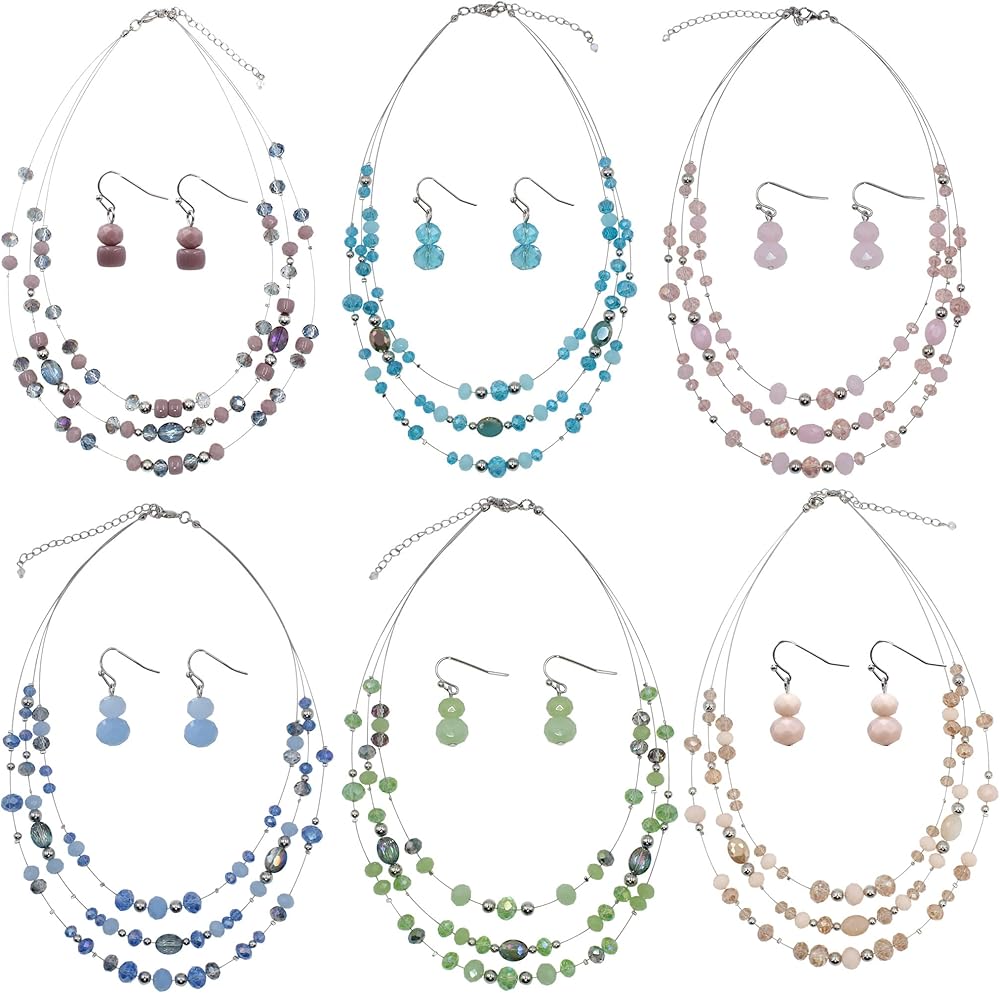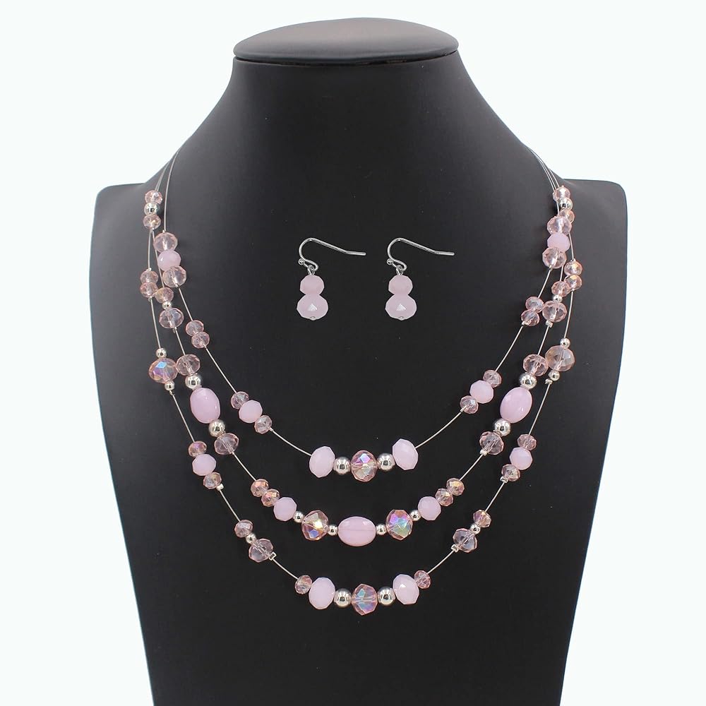 تصميم فريد: هذه القلادات متعددة الصفوف للنساء مصنوعة يدويًا من كريستالات زجاجية مصطنعة ومواد أخرى من خلال الأسلاك