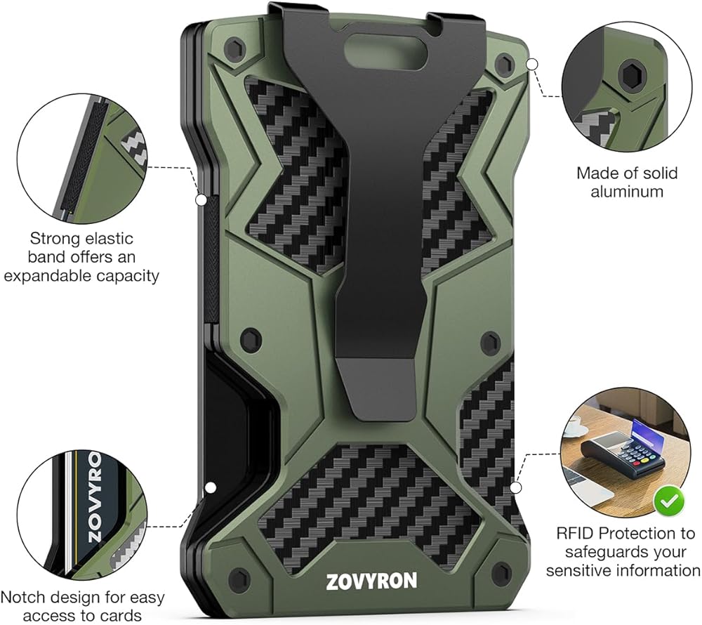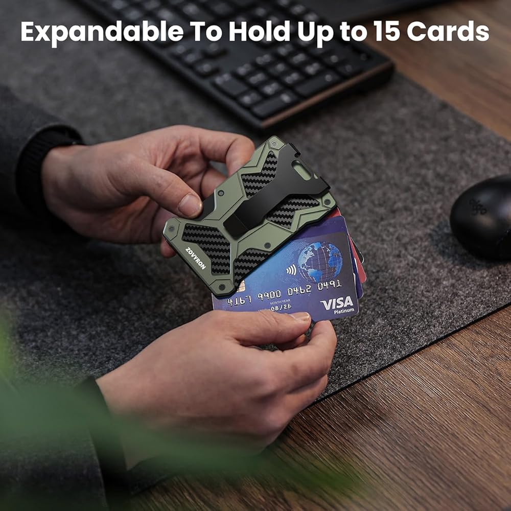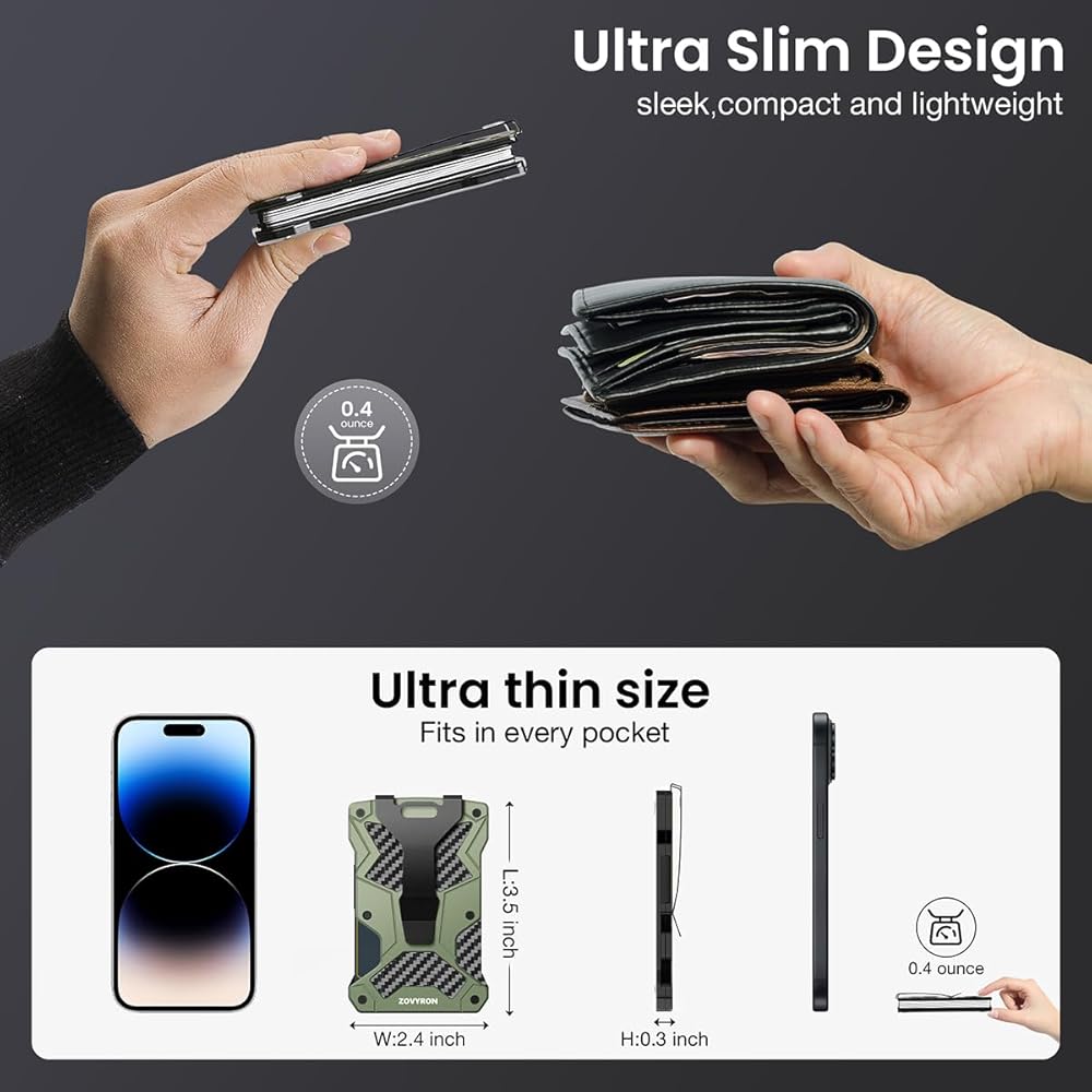 【مظهر ميكانيكي رائع】: مصنوعة من لوحة من ألياف الكربون ومؤطرة من سبائك الألومنيوم عالية الجودة، توفر محافظ البطاقات الهوائية البسيطة لدينا نمطًا ميكانيكيًا رائعًا، والذي يعطي شعورًا ممتازًا وأنيقًا ومتينًا.