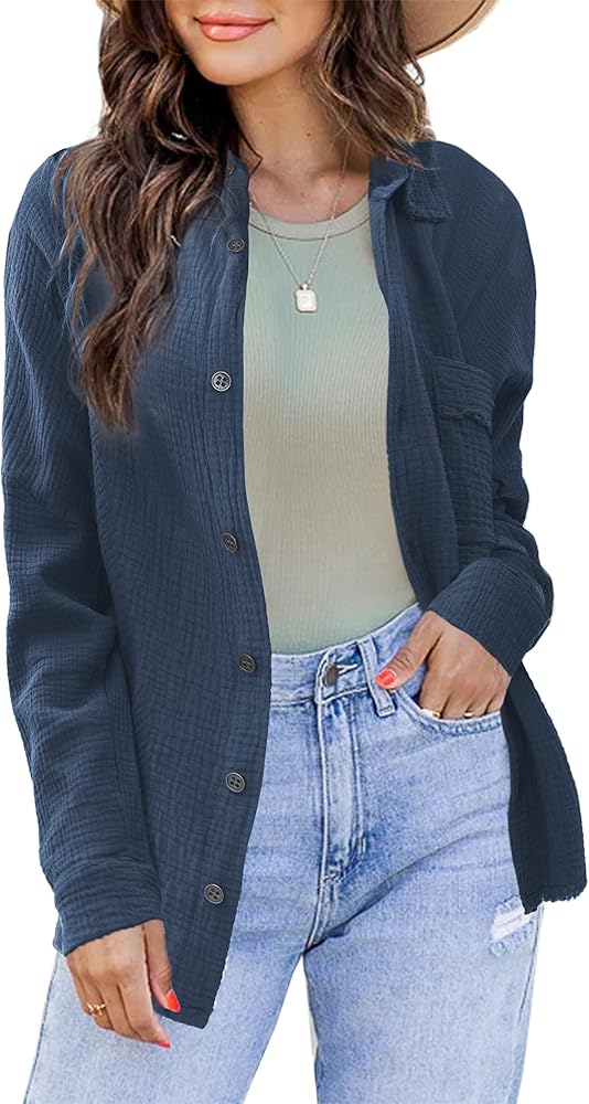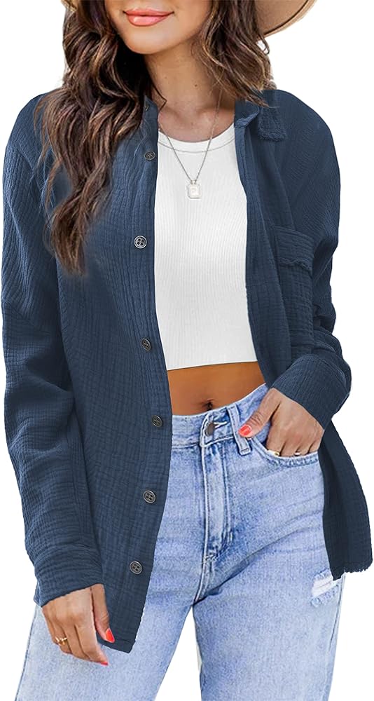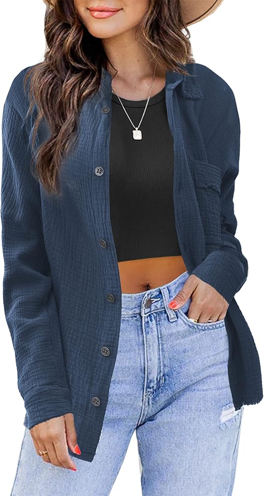 طول قميص البلوزة القطني ذو الأزرار يجعلها مثالية كسترة صيفية أو طبقة فوق الشورت! يمكنك استخدامه كقميص مع جينز قصير، أو حتى الذهاب إلى الشاطئ كغطاء لملابس السباحة. نعتقد أنك ستحبين هذه الملابس الصيفية المريحة والعصرية لعام 2023.