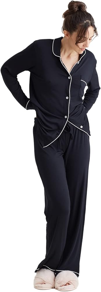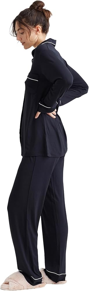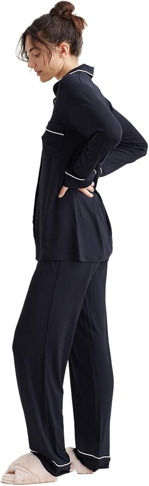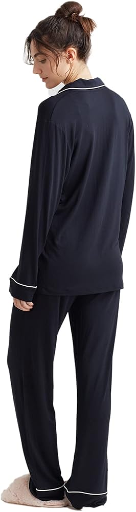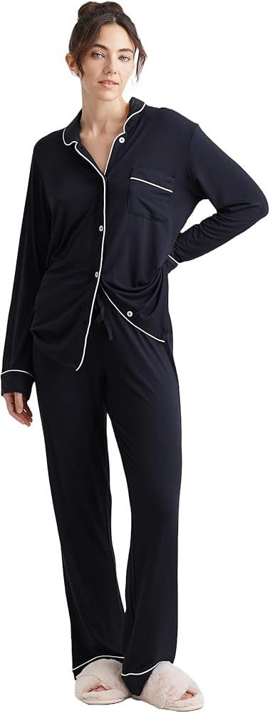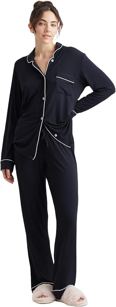 أطقم بيجامة نسائية مشروط ناعمة بطول كامل، ملابس نوم بأكمام طويلة وأزرار سفلية، أطقم صالة Pjs ناعمة