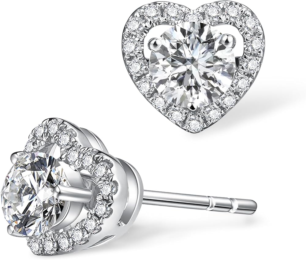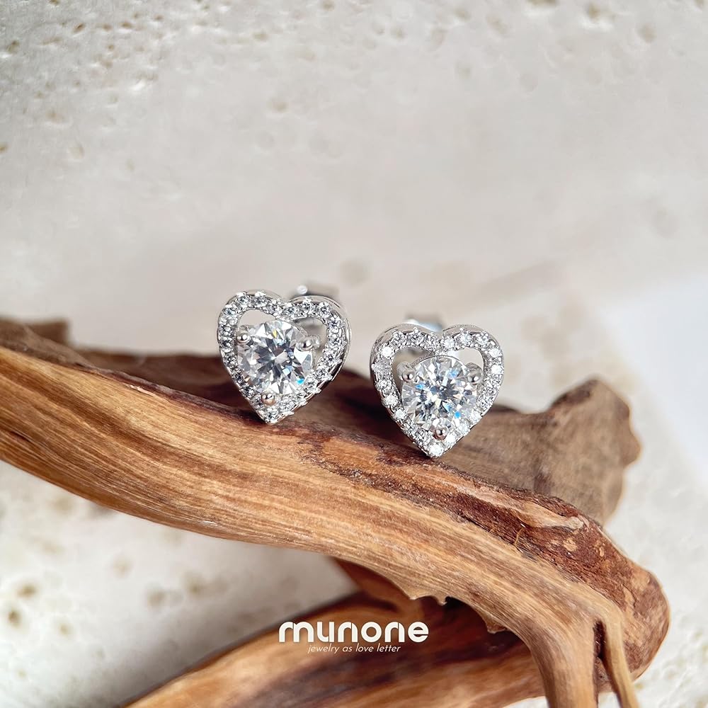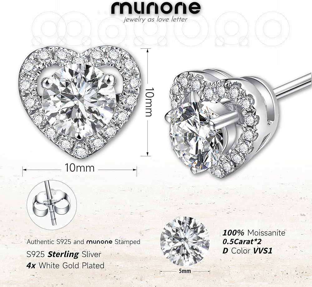 munone Moissanite Stud Earrings,1ct Brilliant Round Cut Lab Created Diamond 14k White Gold Plated Sterling Silver Earrings for Women Men