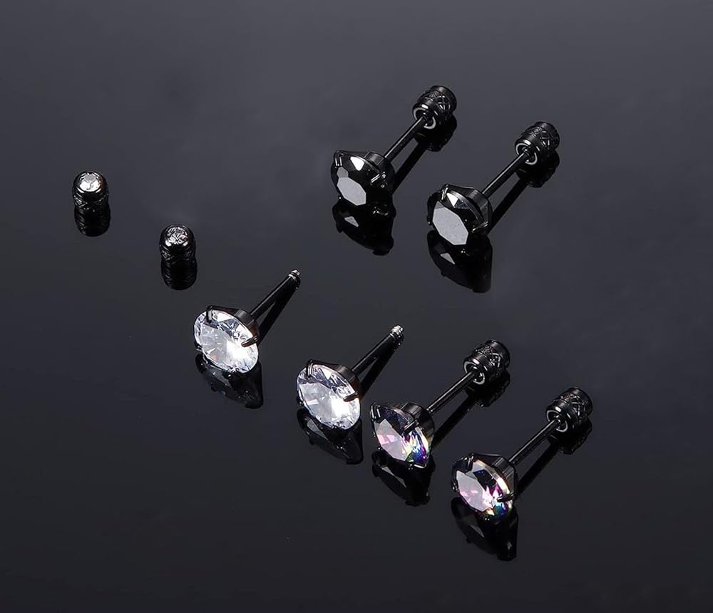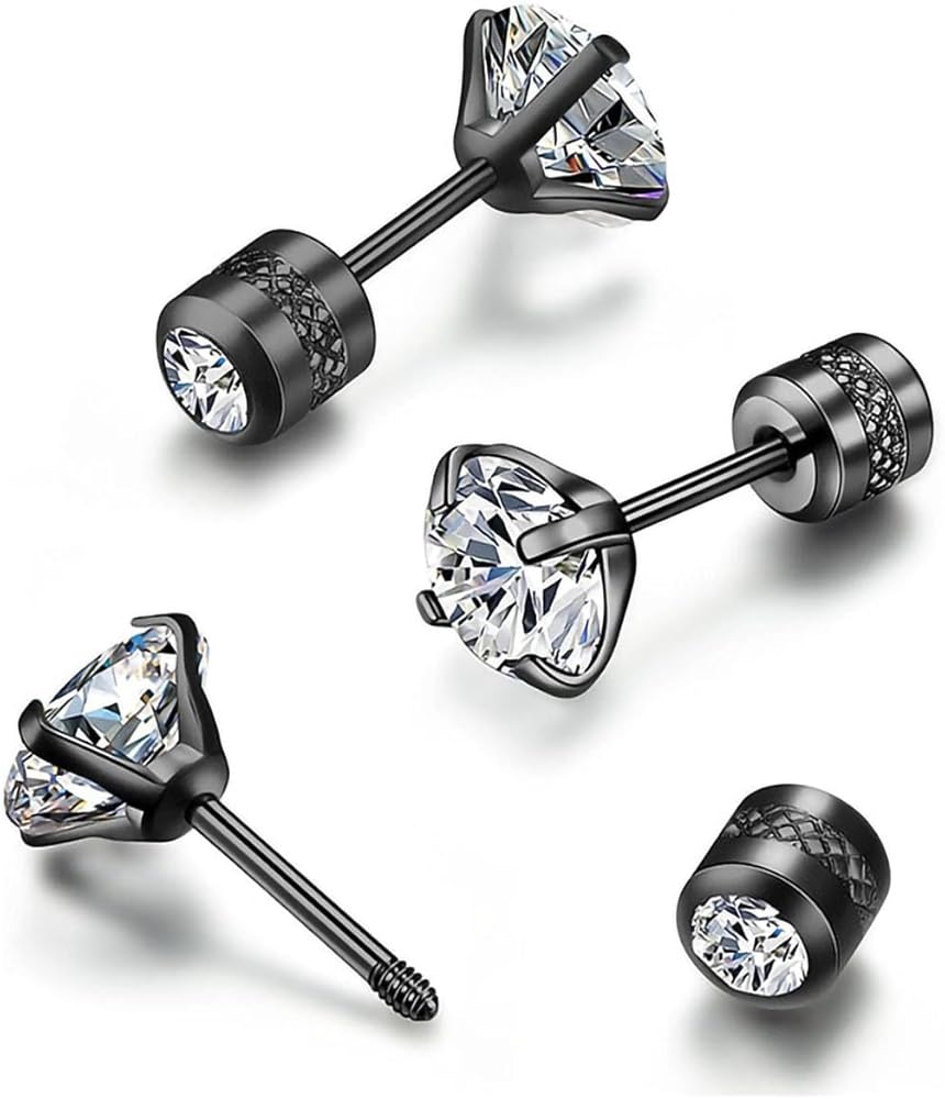 Product Name: GIVUFUN Men Women Cubic Zirconia Ear Studs Fashion Stainless Steel Earrings 3 Pairs