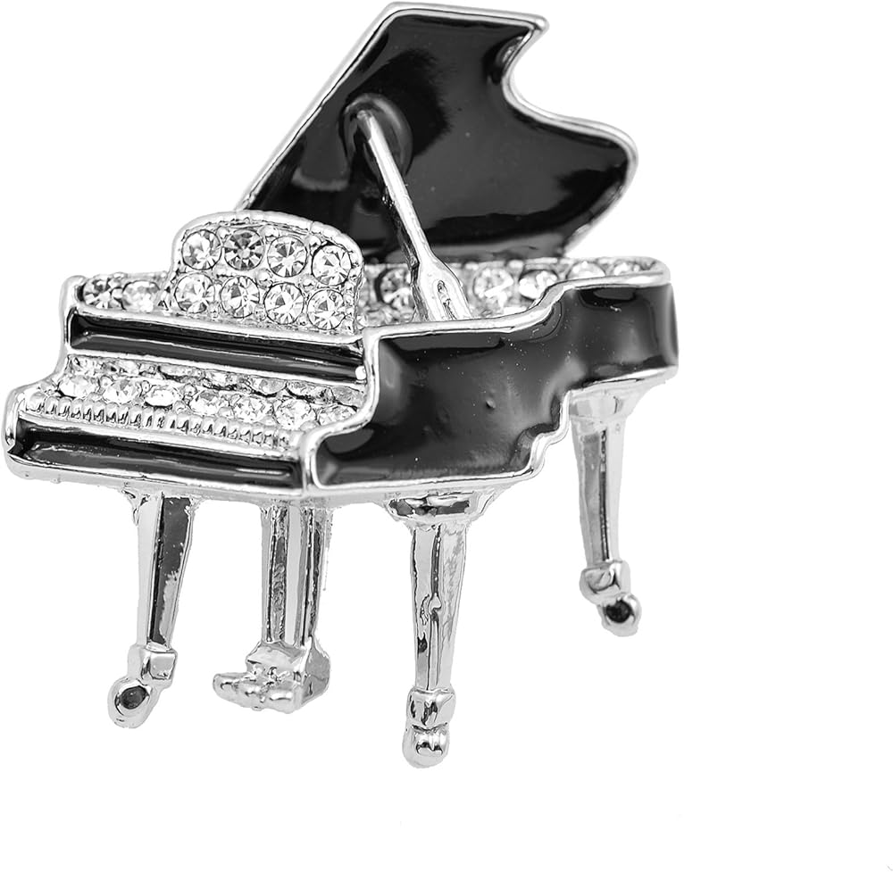 Share your love of music with this grand piano pin brooch. Black epoxy finish makes this brooch stand out and fun.