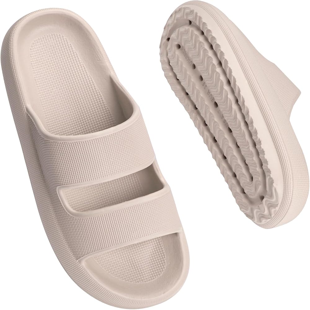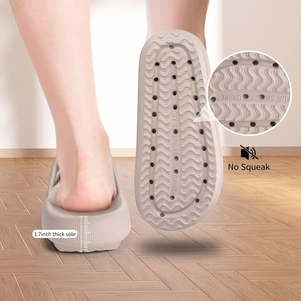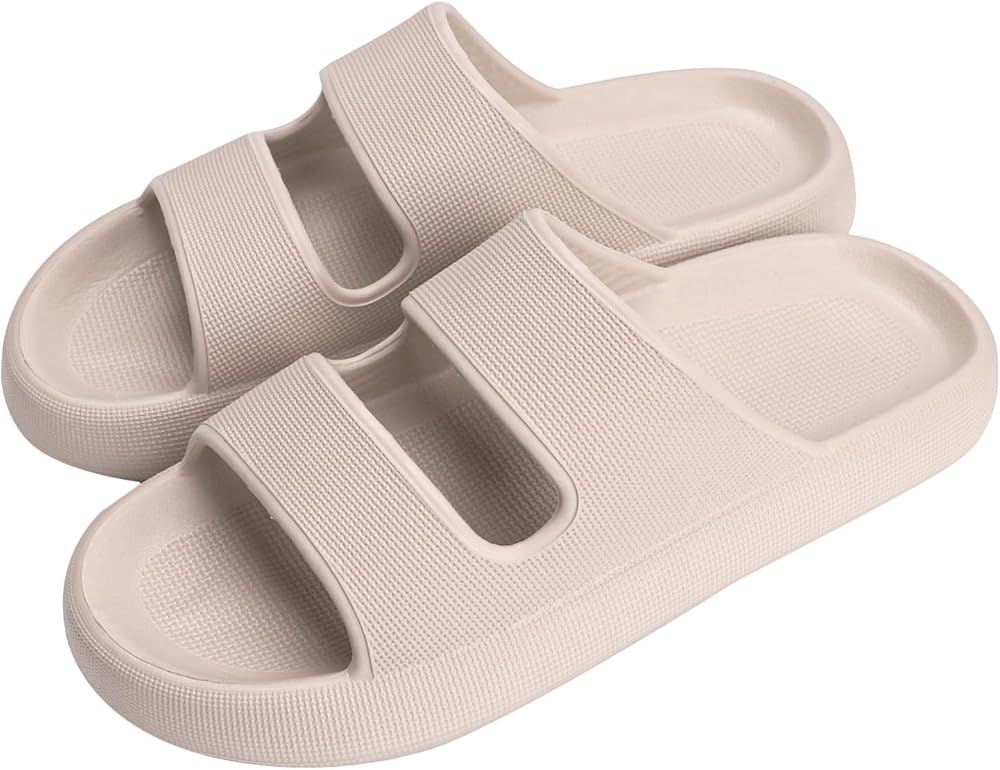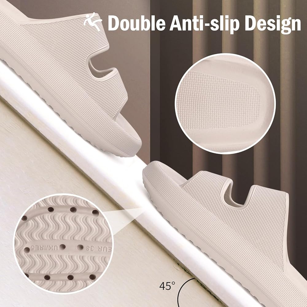 【مادة فائقة الراحة】- 👣 شرائح سحابية للرجال والنساء مصنوعة من مواد عالية الجودة صديقة للبشرة، وصديقة جدًا لبشرتك؛ مادة EVA عالية المرونة، ناعمة وخفيفة الوزن، توفر ملاءمة واسعة ومريحة. تتيح لك الاستمتاع بالراحة مثل الوقوف على السحاب.