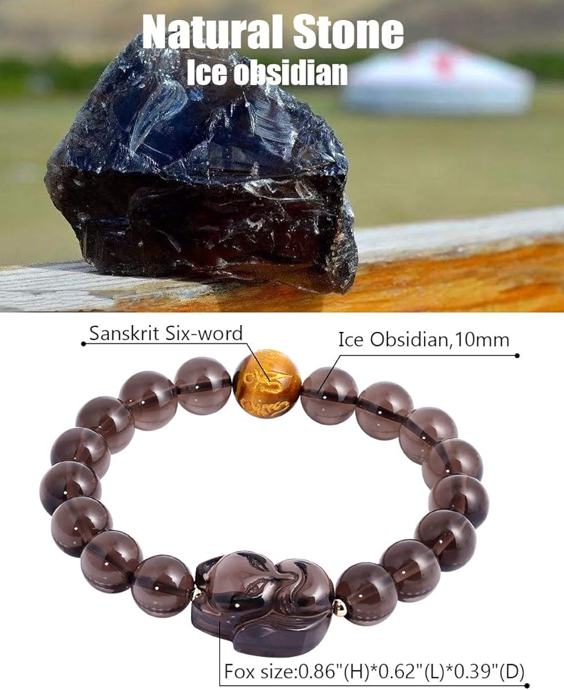 Lightock Fox Ice Obsidian Bracelet Engraved In Sanskrit Six-word Lucky Bracelet for Women 10mm Beads