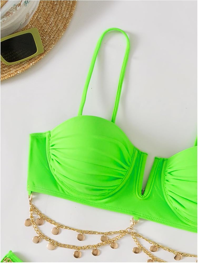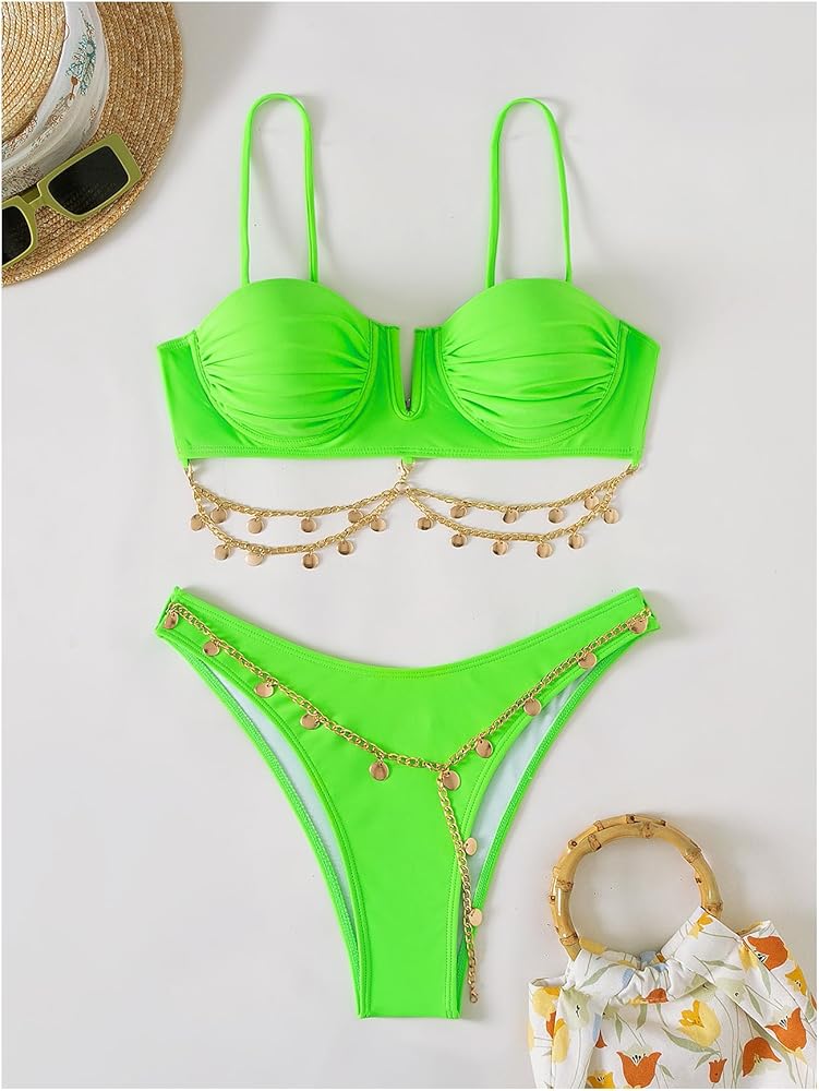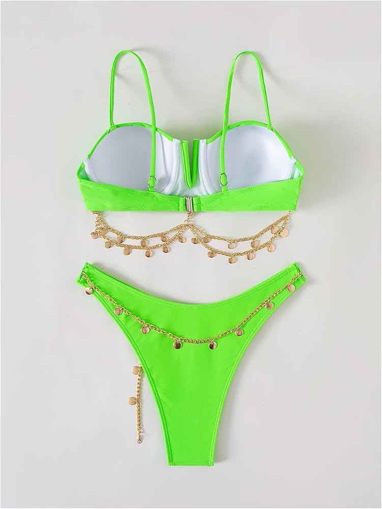• Feature: 2 Piece, Chain, Push Up, Spaghetti Strap, Stretchy