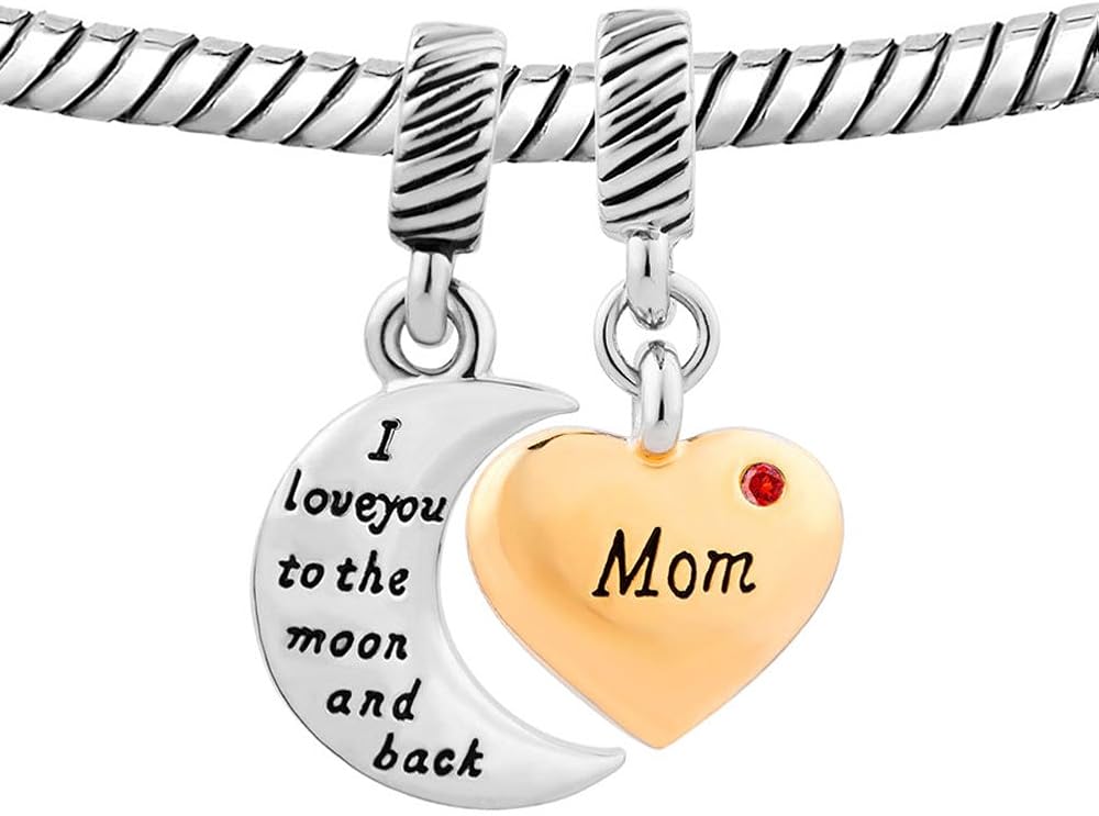 LovelyJewelry I Love You to the Moon and Back Synthetic Crystal Mom Heart Charm Dangle Beads For Bracelets.. Personalize your charm bead bracelet for THE perfect Christmas gift and its an ideal holiday gift idea for Mother's Day, Valentine's Day, Graduation Gift or Bridal Gifts. Our bead charms are compatible to European Bracelet and it is guaranteed to fit. Choose from LovelyJewelry's assortments of bead charm bracelet to make your perfect memorable story last.