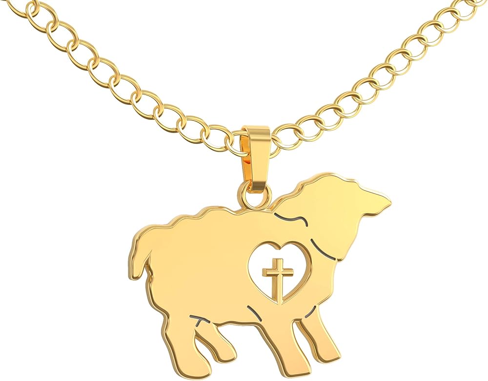 Super cute lamb necklace plated in 18K gold. Great original pendant for any Christian or Catholic to carry the cross and show their devotion to Jesus and the Lord. Perfect for first communions, baptisms, blessings or for anyone who has accepted Jesus into their heart.