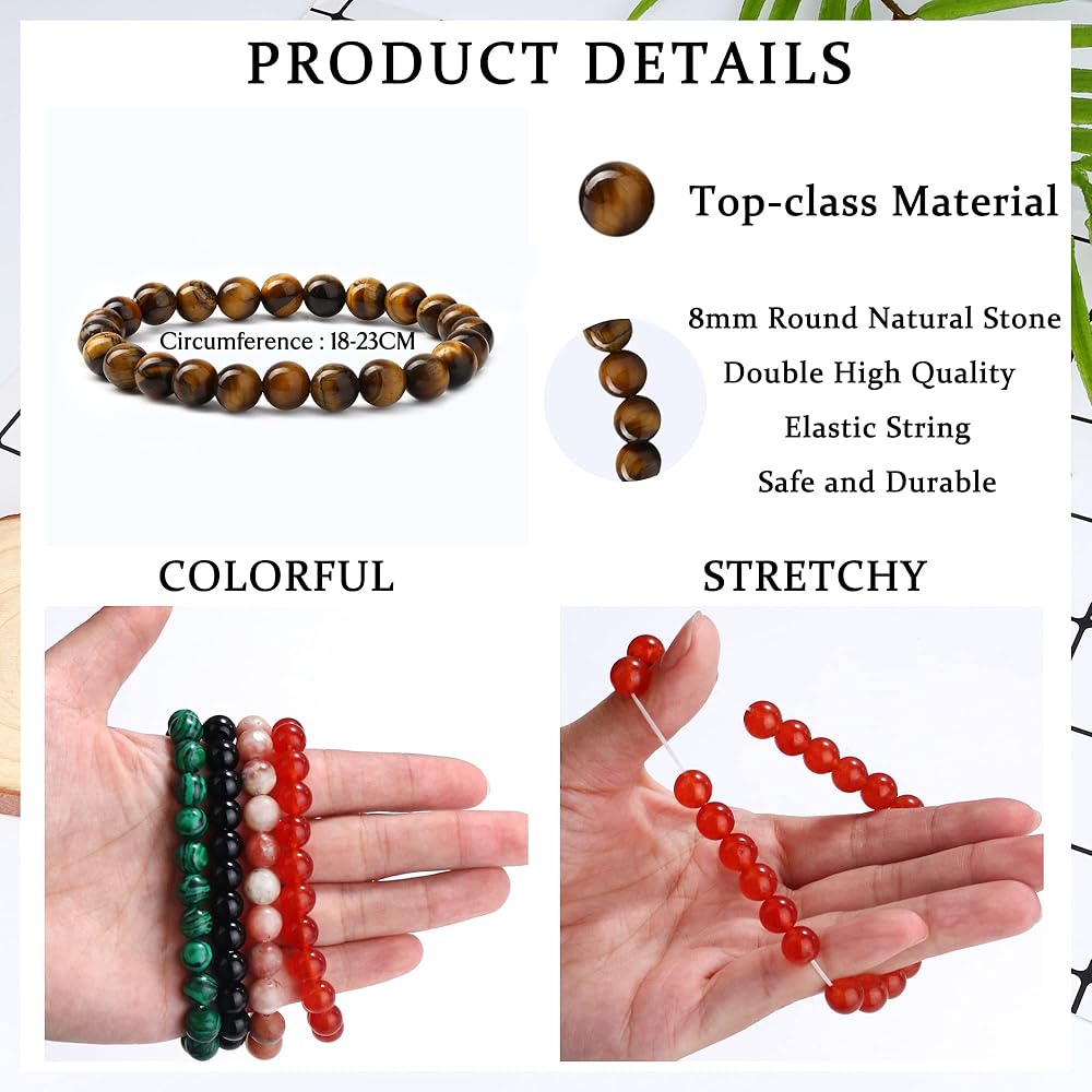 【سوار من الحجر الطبيعي】أساور خرز الأحجار شبه الكريمة هذه مصنوعة من حجر طبيعي دائري 8 ملم بكثافة خرز منخفضة، خفيفة الوزن ومريحة في الارتداء. يمنحك الخرز الناعم شعورًا رائعًا عند اللمس، مما يمنحك تجربة ارتداء أفضل.