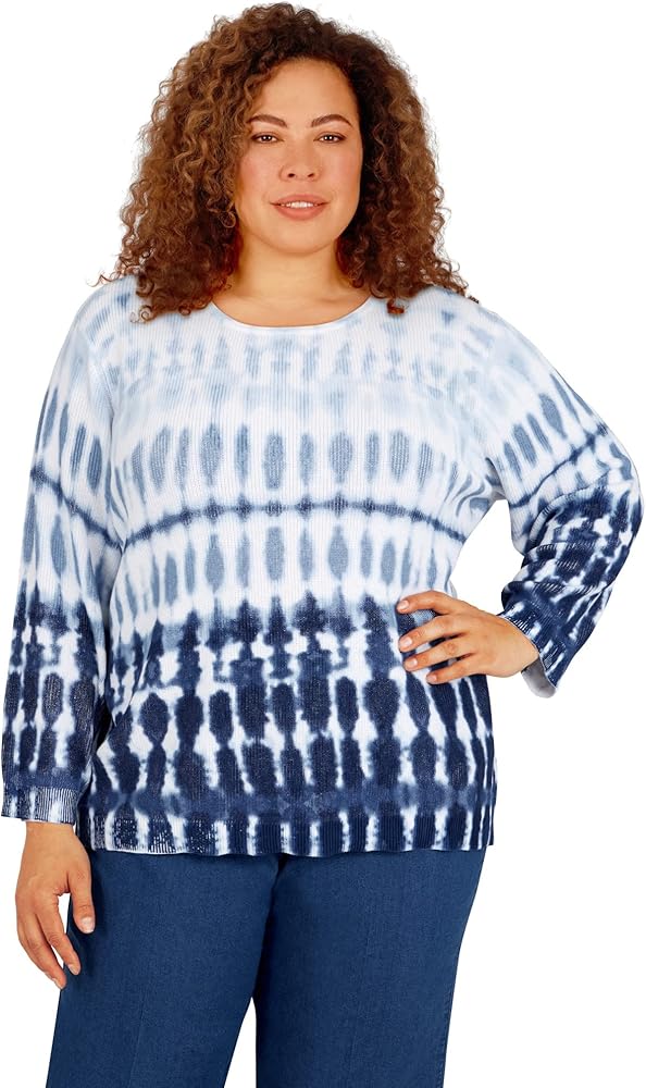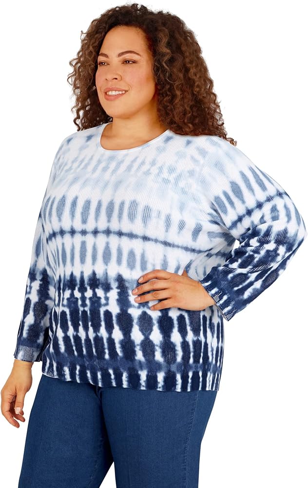سترة نسائية من Alfred Dunner بمقاس كبير ورقبة دائرية متدرجة اللون
