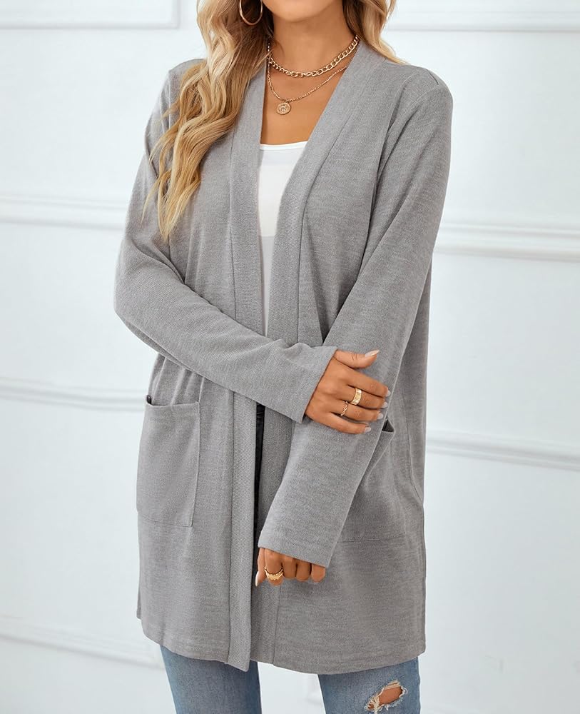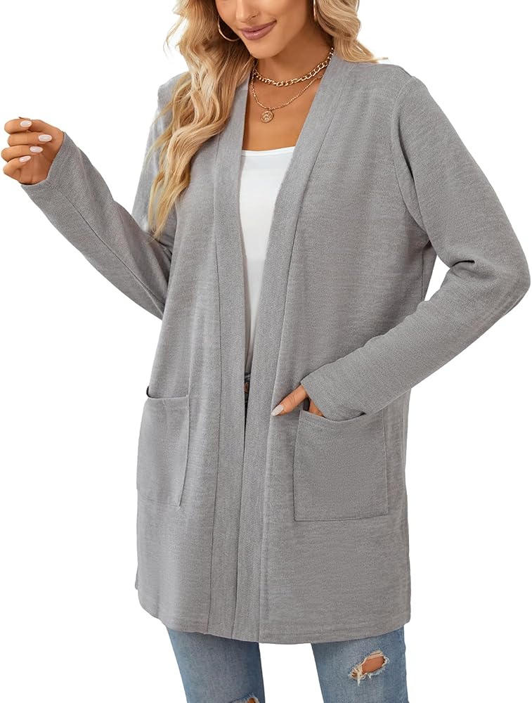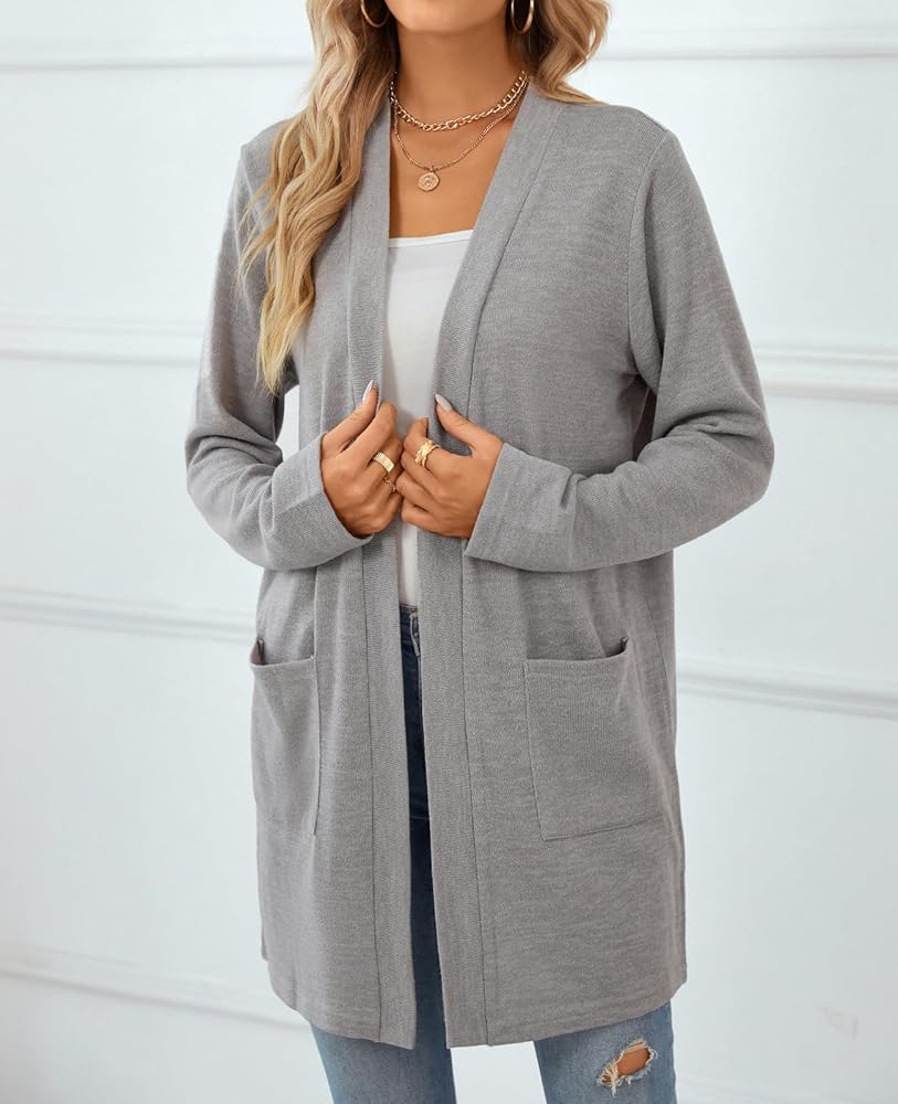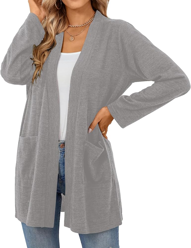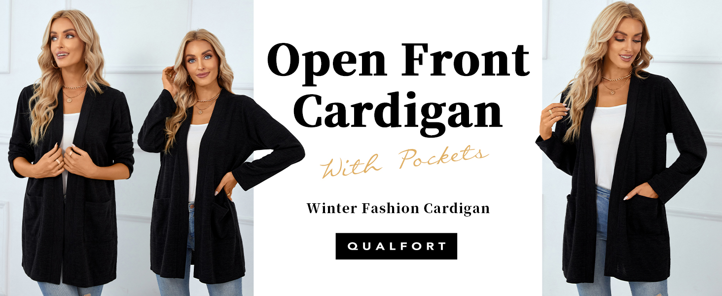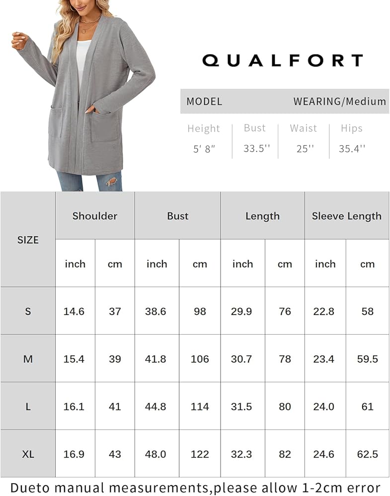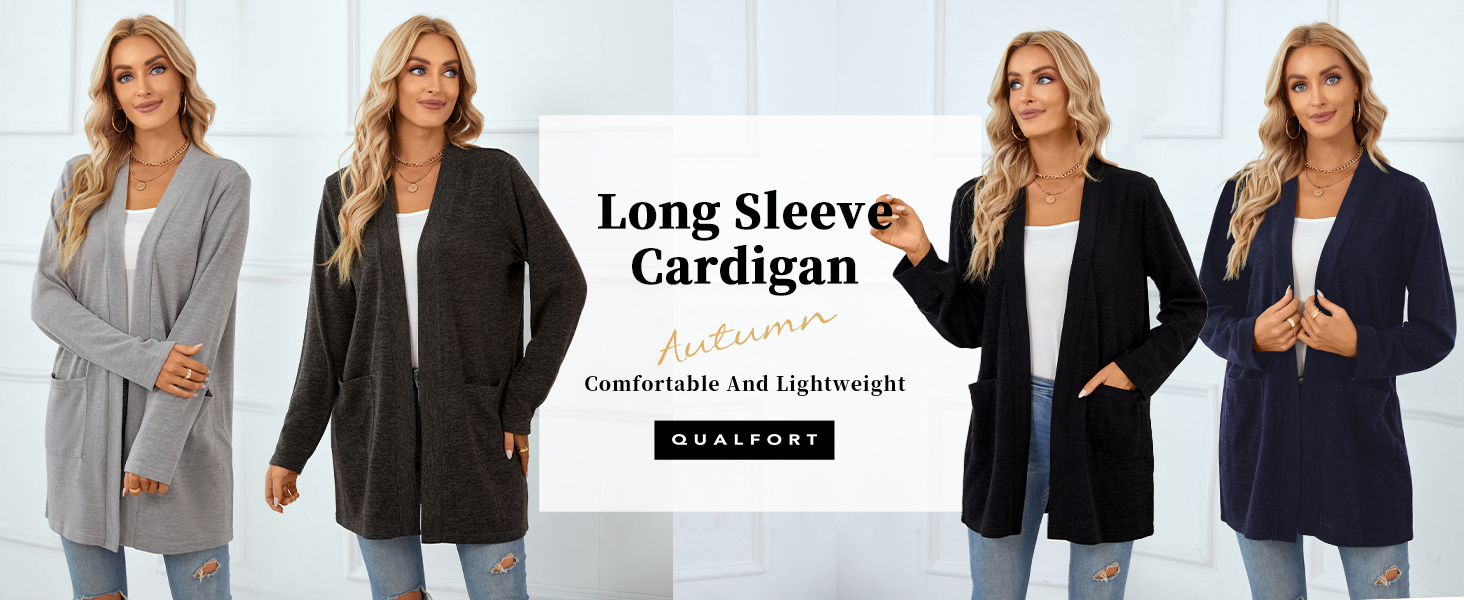 • سترة طويلة الأكمام مع جيوب. سترة QUALFOR المفتوحة من الأمام للنساء مناسبة مع قميص بدون أكمام أو قميص، وأكثر ملاءمة مع الجينز، والجيوب تجعل من السهل عليك حمل الأشياء الصغيرة مثل الهواتف المحمولة.