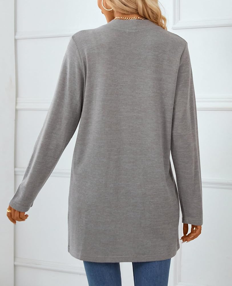 سترة QUALFORT الناعمة للنساء بأكمام طويلة مع جيوب