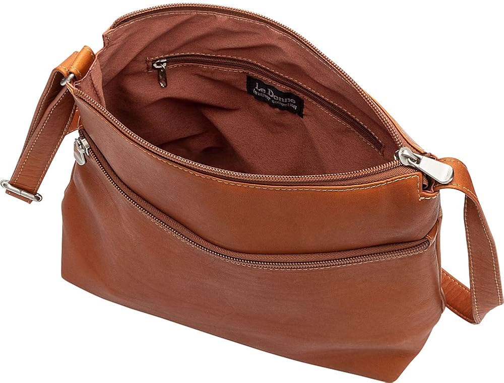 Add instant style to any outfit in your wardrobe with this leather cross-body bag from Le Donne Leather. The Le Donne Leather Ash Ridge Crossbody bag is handcrafted from genuine Colombian full grain leather and features a zip top closure to keep your valuables secured safely inside. The fully lined interior offers plenty of room for your must-haves and includes a back wall zipper pocket to hold small accessories and a slip pocket to hold your smart phone. The exterior is detailed with a slender adjustable strap for easy carrying, antique hardware that adds a stylish touch, and a front zip pocket for added storage. Genuine Full Grain Colombian Leather Lined interior Handcrafted Antique Hardware Exterior Zip Pocket Interior Zip Pocket Interior Slip Pocket Top Zip Closure Adjustable Strap Drop length: 25” Dimensions: 10” x 10.5” x 4.5” Weight: 1 lb.