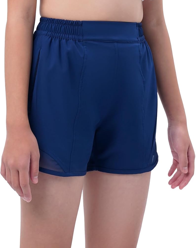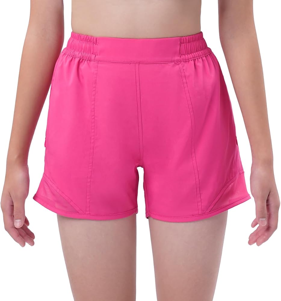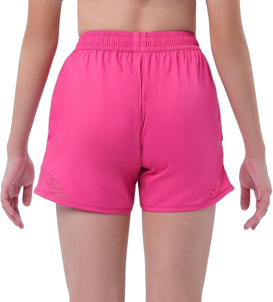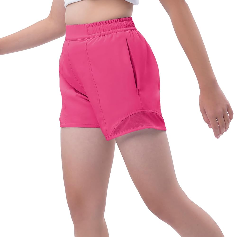 【سريع الجفاف】شورت رياضي للفتيات مصنوع من قماش خفيف الوزن وسريع الجفاف يمتص العرق بعيدًا ليبقي أطفالك باردين وجافين ومرتاحين طوال اليوم. تصميم شبكي هوائي في الأسفل لمزيد من التهوية