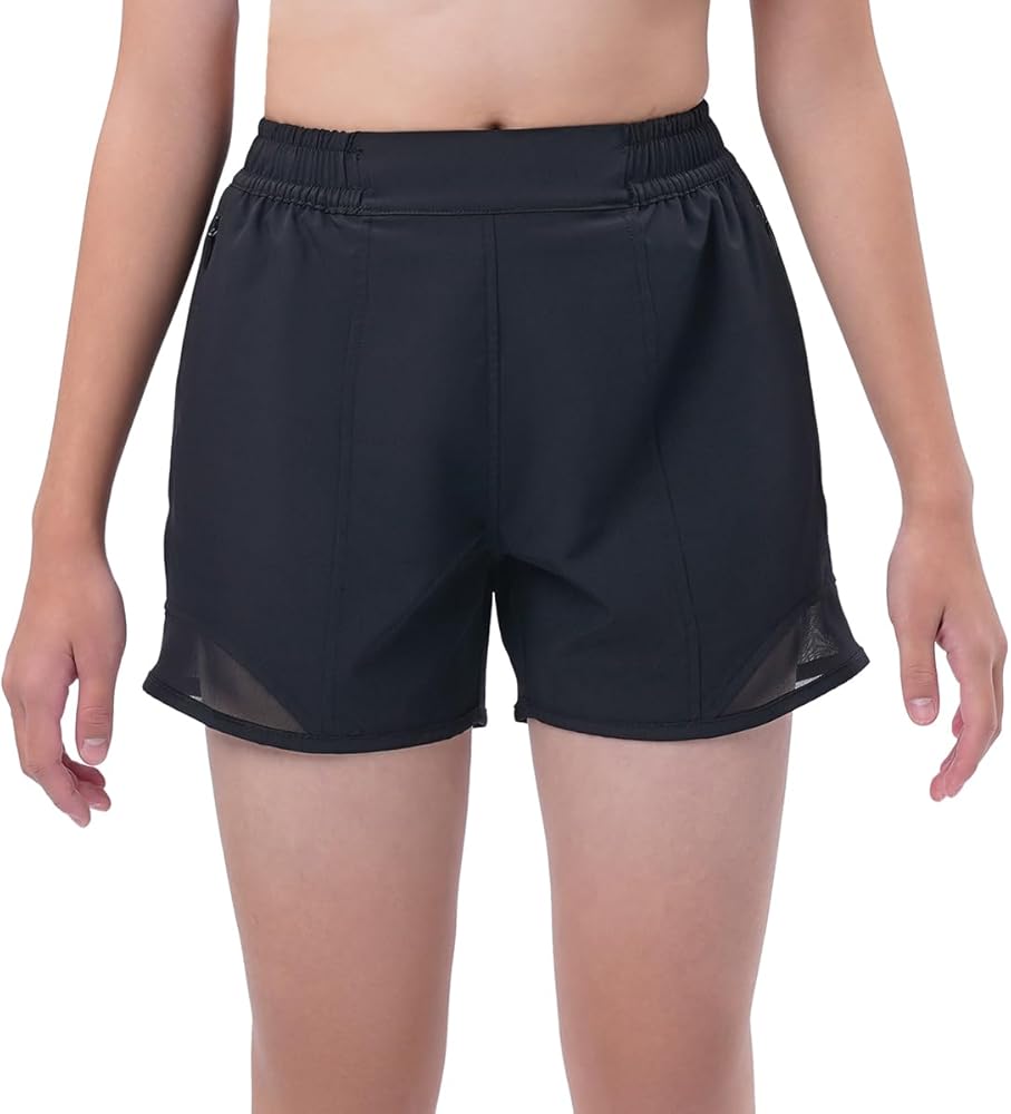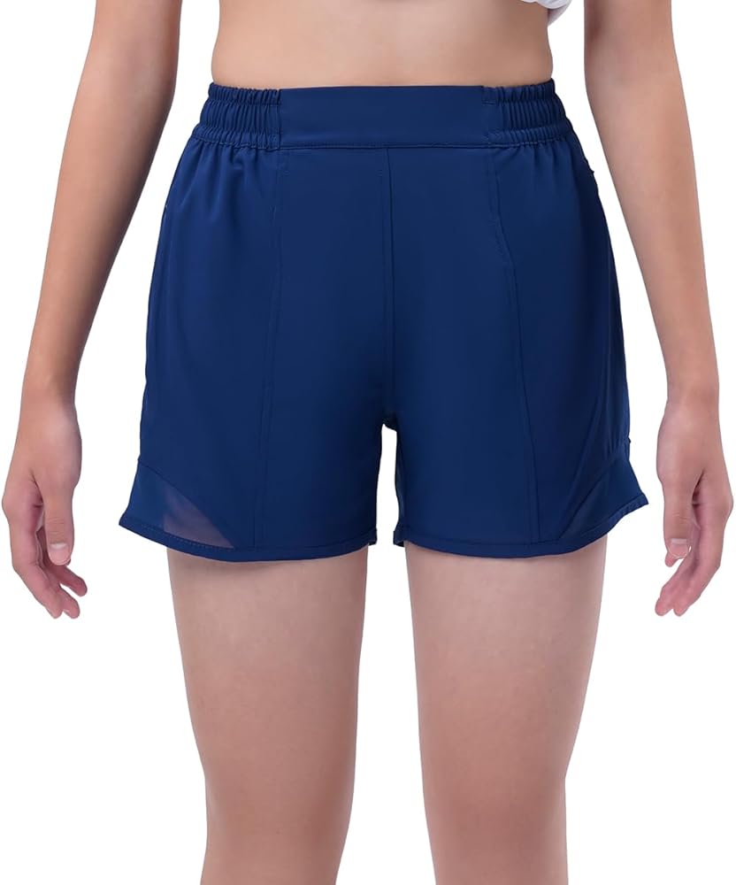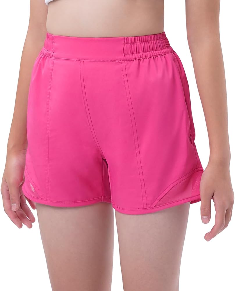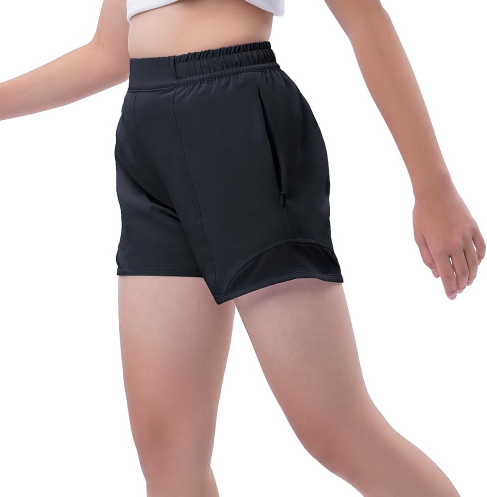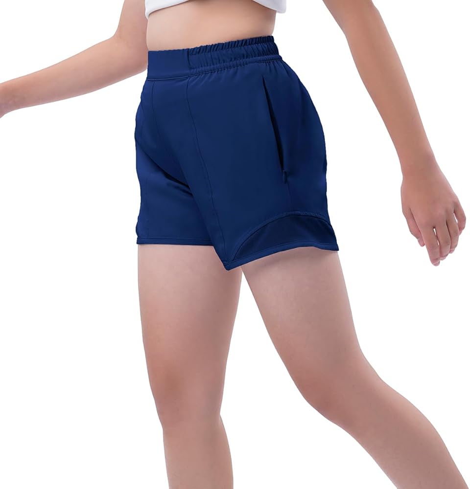 【سريع الجفاف】شورت رياضي للفتيات مصنوع من قماش خفيف الوزن وسريع الجفاف يمتص العرق بعيدًا ليبقي أطفالك باردين وجافين ومرتاحين طوال اليوم. تصميم شبكي هوائي في الأسفل لمزيد من التهوية