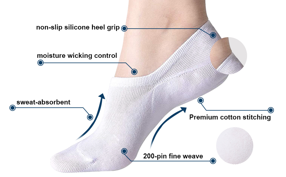 خامة ممتازة - جوارب نسائية غير ظاهرة، مصنوعة من مادة القطن الممشط الطبيعي ناعمة الملمس وقابلة للتمدد، وهي خفيفة الوزن ومسامية وأكثر متانة، مما يحافظ على قدميك جافة طوال اليوم.