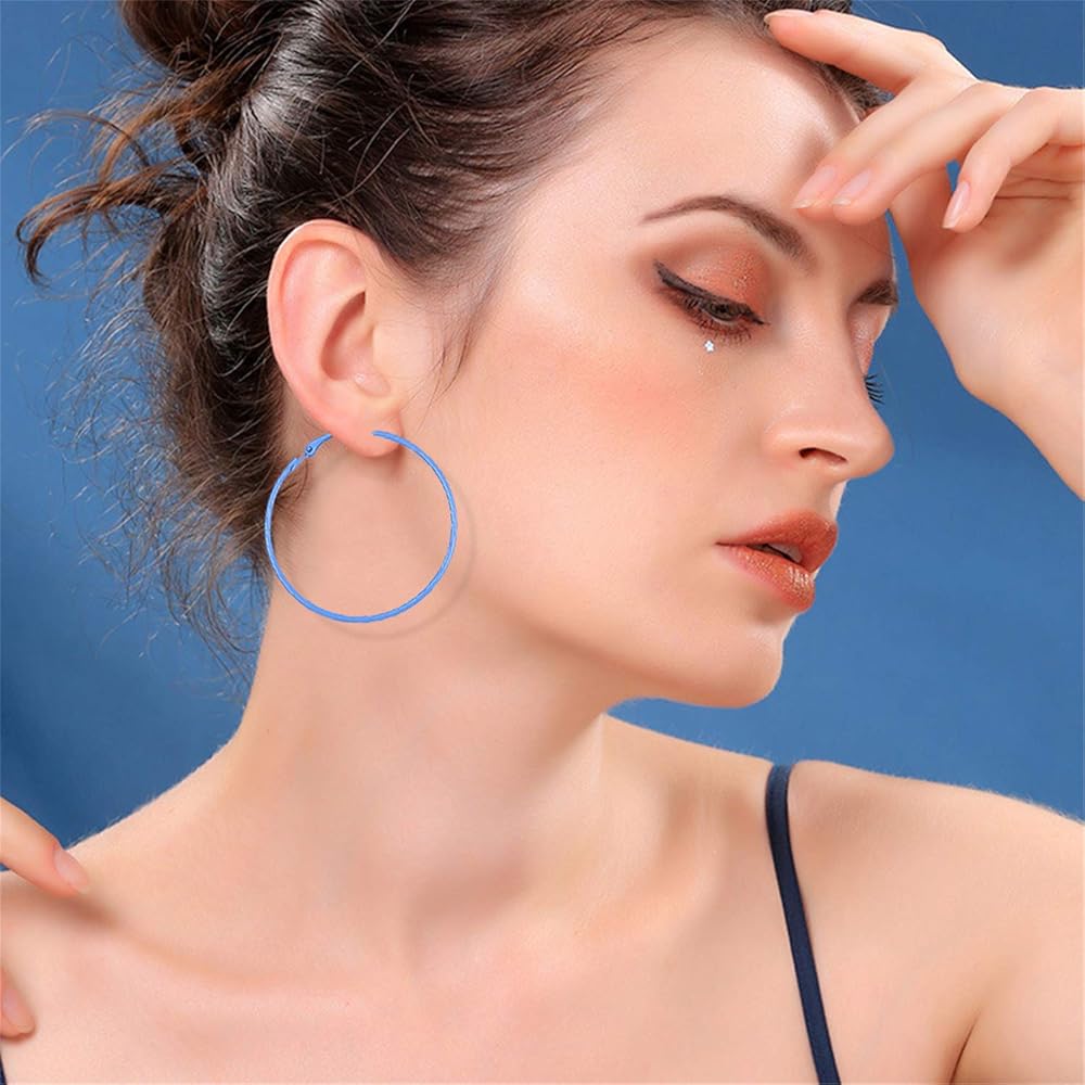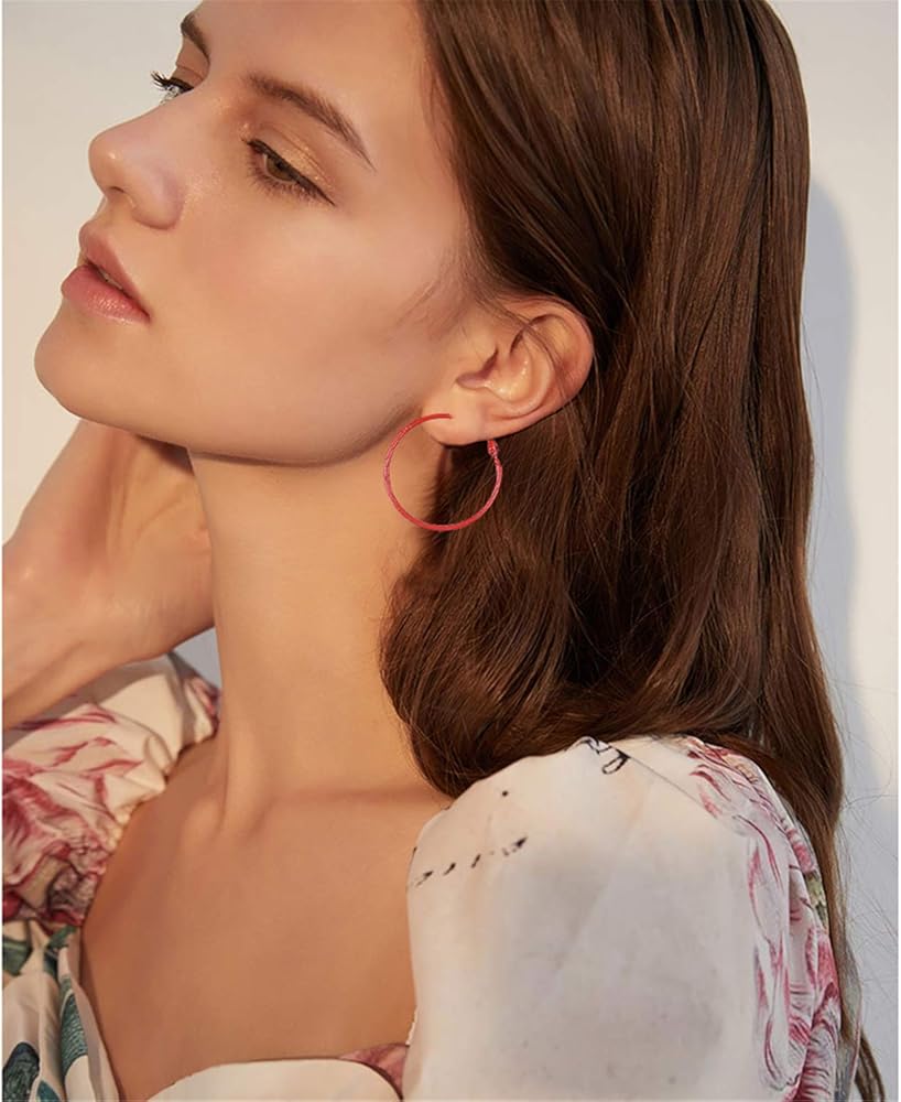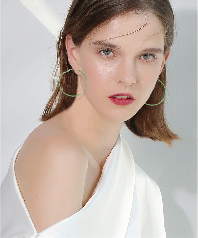 • Simple retro style: the retro earrings are big hoop shapes, featuring click top closure, easy to wear and take off, a simple yet elegant way to dress up your look, 12 different colors are provided, like pink, purple, neon green, neon yellow, red, black and more, look fresh and eye-catching, easy to match with your different hairstyle, makeup and dresses