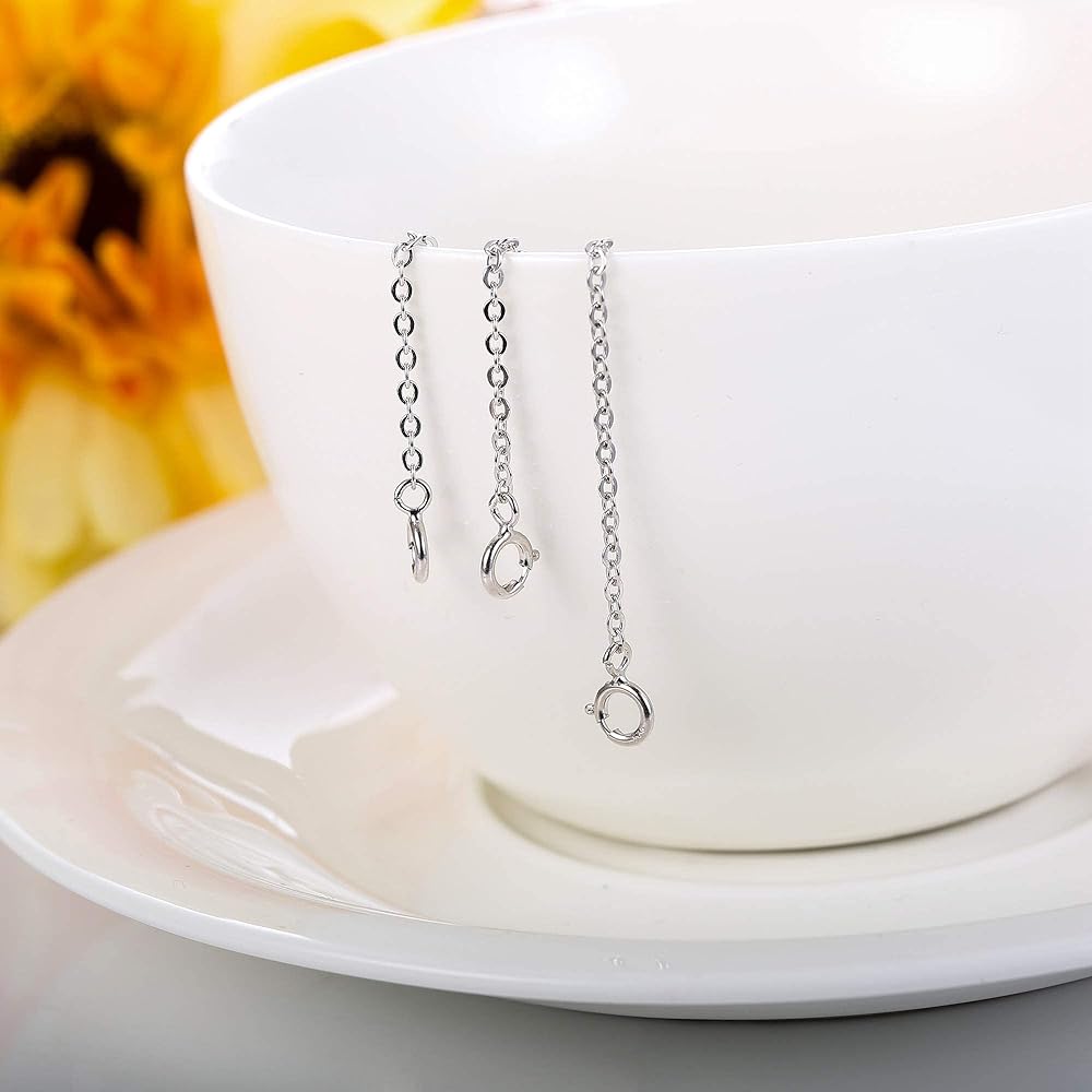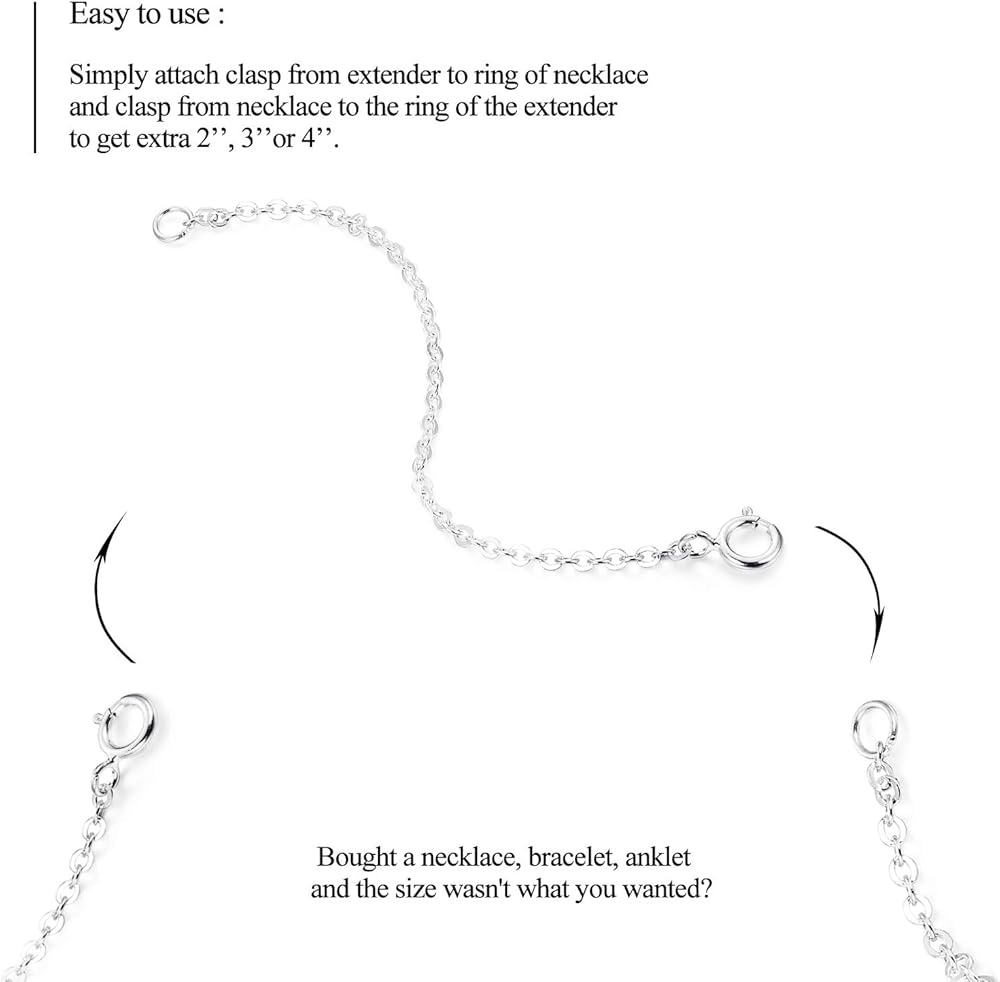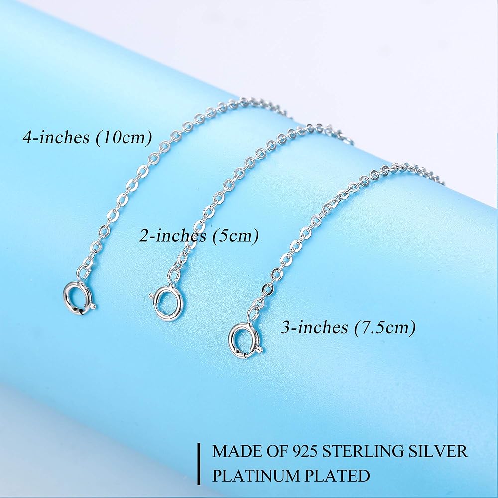 ♫ التصميم: موسع سلسلة من الفضة الإسترلينية 925 لمجموعة القلائد، مجموعة من 3 قطع بأحجام مختلفة - 5 سم، 7.6 سم، 10.1 سم، المزيد من الخيارات لتلبية احتياجاتك المختلفة. يمكن تعديلها بسهولة عن طريق ربطها حسب اختيارك. من سلسلة أو قلادة أو سوار أو خلخال لتحقيق الطول المطلوب.