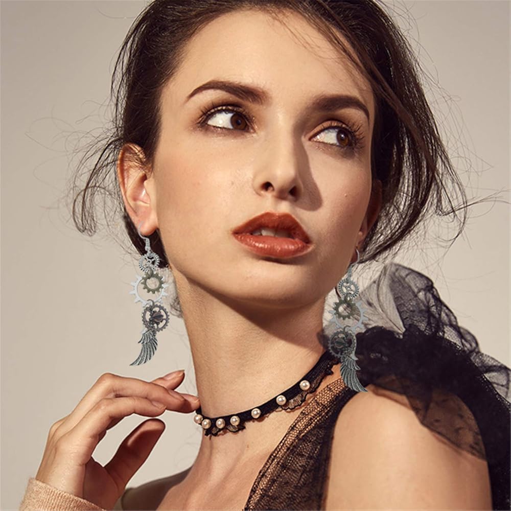 تصميم فريد من نوعه.. أقراط متدلية بنمط بانك ستيم بانك، تصميم بسيط وواسع من التصميم الأصلي لشعور أكثر راحة عند الارتداء، كما أنها رائعة بنفس القدر للمناسبات الكاجوال أو الأنيقة.