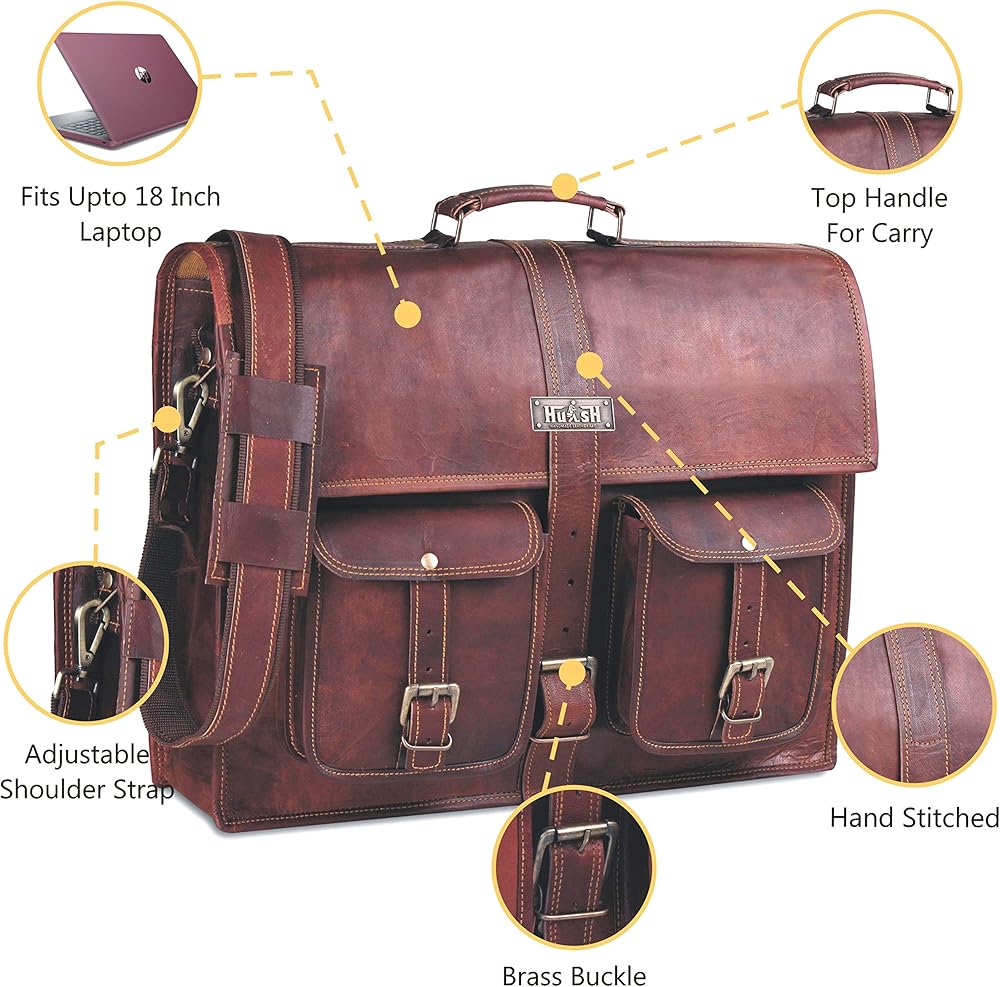 هولش شنطة جلدية نحن هولش - حقائب جلدية مصنوعة يدويًا ونحن نصنع الحقائب الجلدية عالية الجودة الأفضل على أمازون للأشخاص الذين يحبون الاستمتاع بالحصول على الإطراء كلما حملوا هذه الحقيبة، طوال اليوم. صنع الحقائب من الجلد عالي الجودة والملاءمة هو شعار شركتنا في هولش حيث نسعى جاهدين لتزويدك بأفضل جودة حقيبة جلدية مع منحك أيضًا شعورًا بالراحة والتصميمات الفريدة مع العلامة المصنوعة يدويًا بحب مع الحقيبة ذات المظهر الأكثر أناقة وعتيقة المتوفرة على أمازون اليوم. نبدأ فقط بالمواد الجلدية الصديقة للبيئة والخالية من المواد الكيميائية بنسبة 100% فقط لتوفير أفضل جودة وحقائب أنيقة لسنوات. الجودة العالية والملمس لحقيبتنا الجلدية المصنوعة يدويًا هي مجرد لمحة عن عملنا عالي الجودة. لأننا نريدك أن تحضر حقيبتك معك في كل مكان، فقد قمنا بتضمين معادن عالية الجودة بحيث يتم إعادة إرسال الحقيبة معك لسنوات. الجلد عالي الجودة الملهم للثقة، هيكل بخياطة جيدة مع مظهر كلاسيكي عصري يعني أن حقيبتك تبقى جاهزة للاستخدام في أي وقت وأينما احتجت إليها. إذا كانت الجودة هي المفضلة لديك، انتظر حتى تجرب حقائب هولش الجلدية - أفضل جودة مع تصميم فريد من نوعه على أمازون. اختر أفضل حقيبة جلدية ذات مظهر ريفي وعتيق من هولش الآن! وصف المنتج: هذه واحدة من أكثر حقائب اللاب توب ذات المظهر الجيد والعملية. مصنوعة من جلد الماعز المحبب بالكامل ومبطنة بالقماش، يمكن لهذه الحقيبة للجنسين أن تناسب جهازي لابتوب حتى 17 انش. تتناسب الحقيبة بشكل جيد مع اجتماعات العمل الرسمية أو النزهات غير الرسمية أو في الفصول الجامعية. خفيف الوزن ولكنه متين، يصبح هذا الجلد أكثر قتامة ونعومة مع الاستخدام... قد يكون للجلد رائحة أرضية أولية بسبب عملية دباغة الشمس وأوقات التخزين الطويلة ولكن الرائحة تتلاشى في غضون أسابيع من الاستخدام. المزايا: جلد محبب بالكامل بنسبة 100% مع بطانة قماشية متينة الحجم: 18 بوصة عرض × 13 بوصة ارتفاع × 5 بوصة عمق، مقبض علوي متين وحزام كتف قابل للتعديل والفصل بسهولة