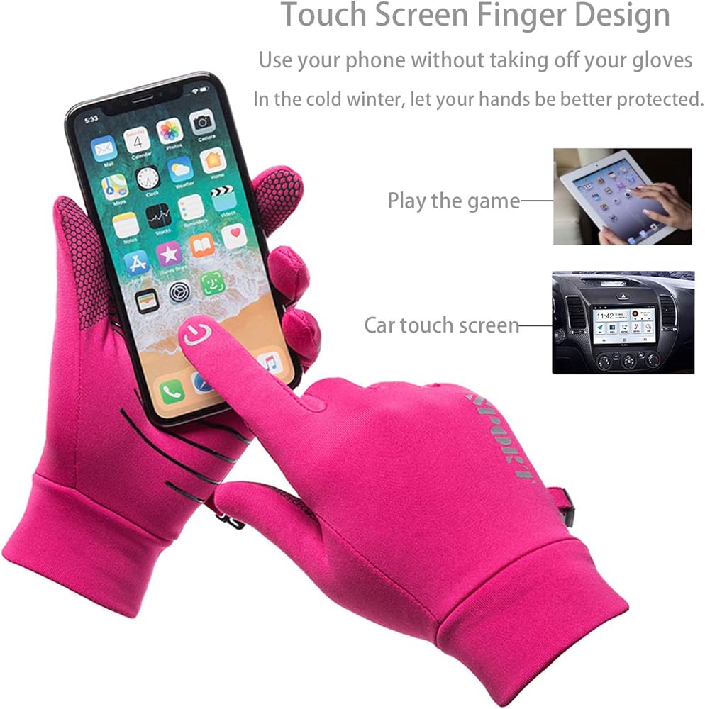 • 【Touch Screen Gloves】- Coated with touch conductive material on the finger tips(thumb index finger and Middle finger), Touchscreen gloves control freely on smartphone,tablet, smart watch, GPS map, driver of cars with touchscreen panels. Flexibly texting, tapping and swipe without taking touchscreen gloves off.