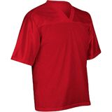 CHAMPRO Flag Football Polyester Jersey. PRO-TRICOT, 100% polyester body. Single-ply stretch dazzle cowl, sleeves and v-neck. Double needle hemmed sleeves and bottom. Great for flag football or cheering on the stands.