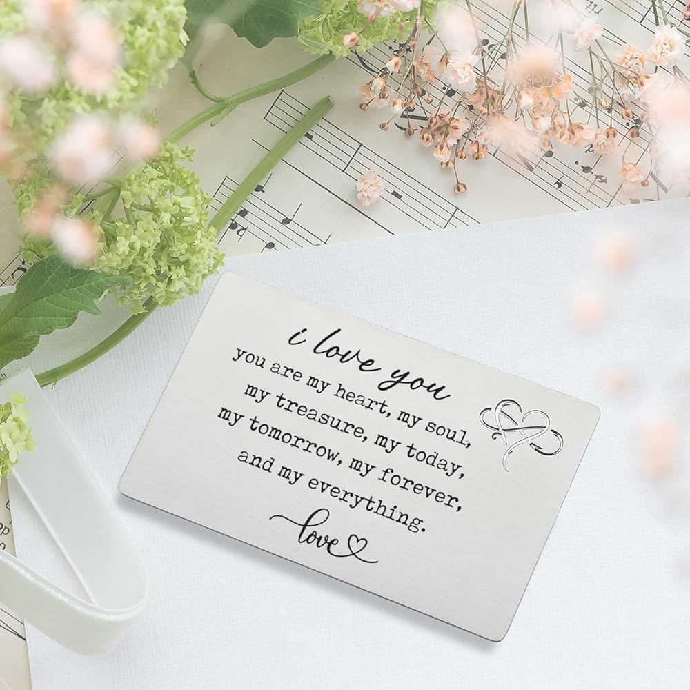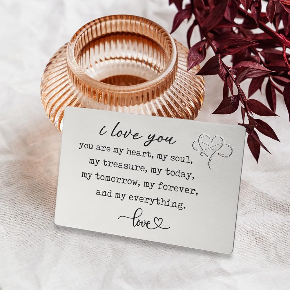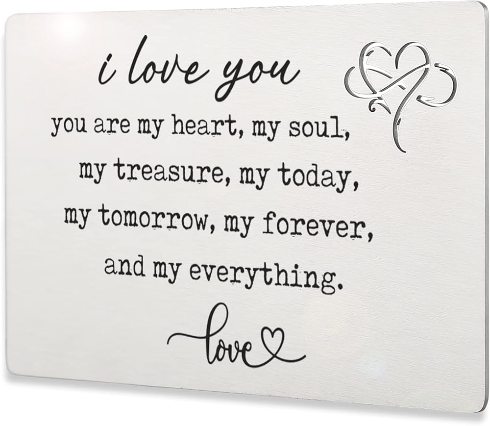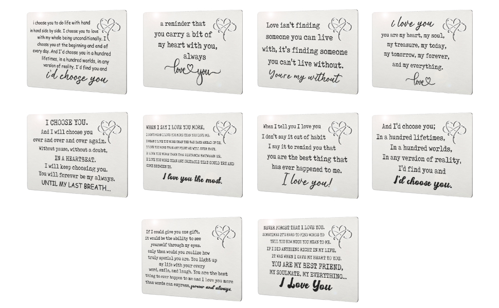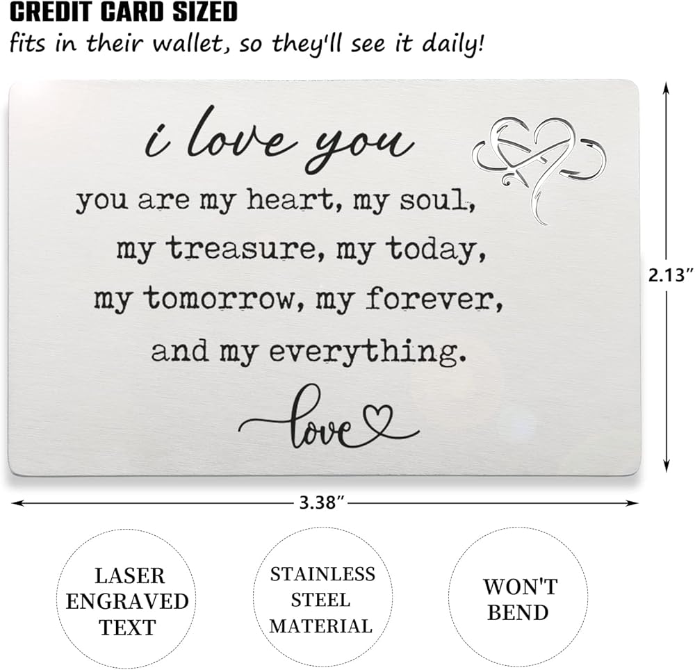 معدن منقوش بالليزر: الكلمات المنقوشة بشكل دائم على حشوة المحفظة المعدنية واضحة وسهلة القراءة ومنقوشة بملاحظات حب صغيرة، والكلمات المنقوشة بالليزر لن تتلاشى أو تبهت. لذلك يمكن لأحبائك أن يعتزوا به دائمًا.
