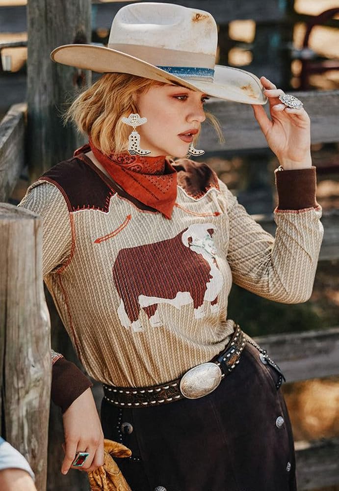 أقراط بيان: هل تريد الإدلاء ببيان دون أن تقول كلمة واحدة؟ هذه الأقراط الريفية الغربية اللامعة المصنوعة من حجر الراين غير تقليدية وخفيفة الوزن! الأقراط الرائجة التي تُحدث دفقة كبيرة!! احصل على زوج من هذه الأقراط المرحة والاحتفالية لإضافتها إلى أي ملابس هذا الموسم!! كما أنها تمثل هدايا رائعة للحبيب، أو الصديقة، أو الزوجة، أو الأم، أو الابنة، أو الأخت، أو الخطيبة، أو الزوجين، أو عيد الحب أو أفضل صديق في عيد الأم، أو عيد الذكرى السنوية، أو الزفاف، أو عيد الميلاد، أو عيد الحب، أو العطلة، أو عيد الميلاد