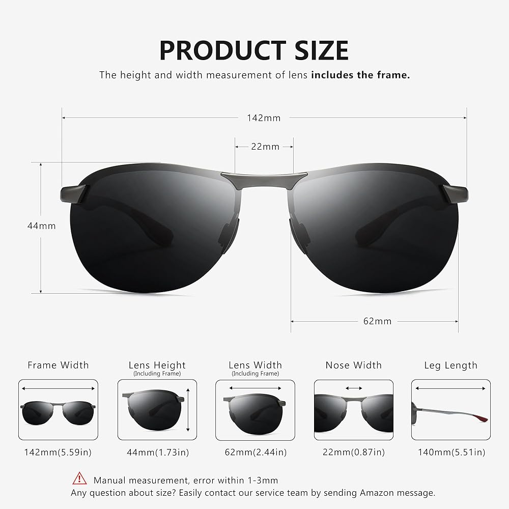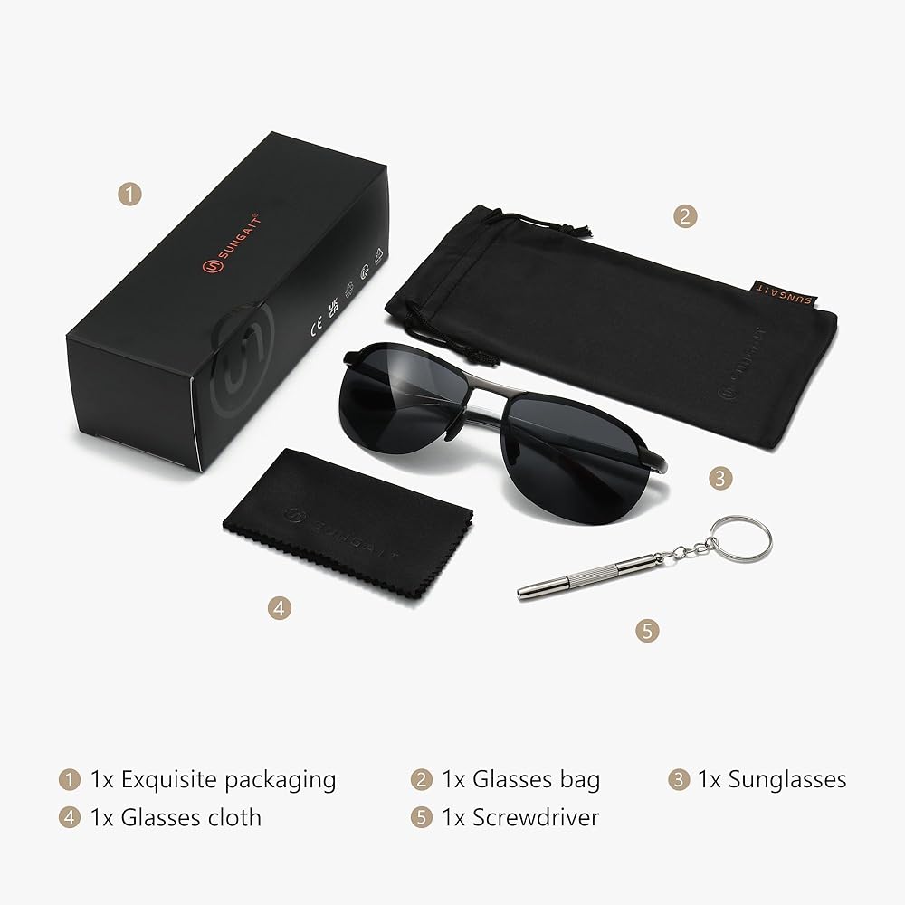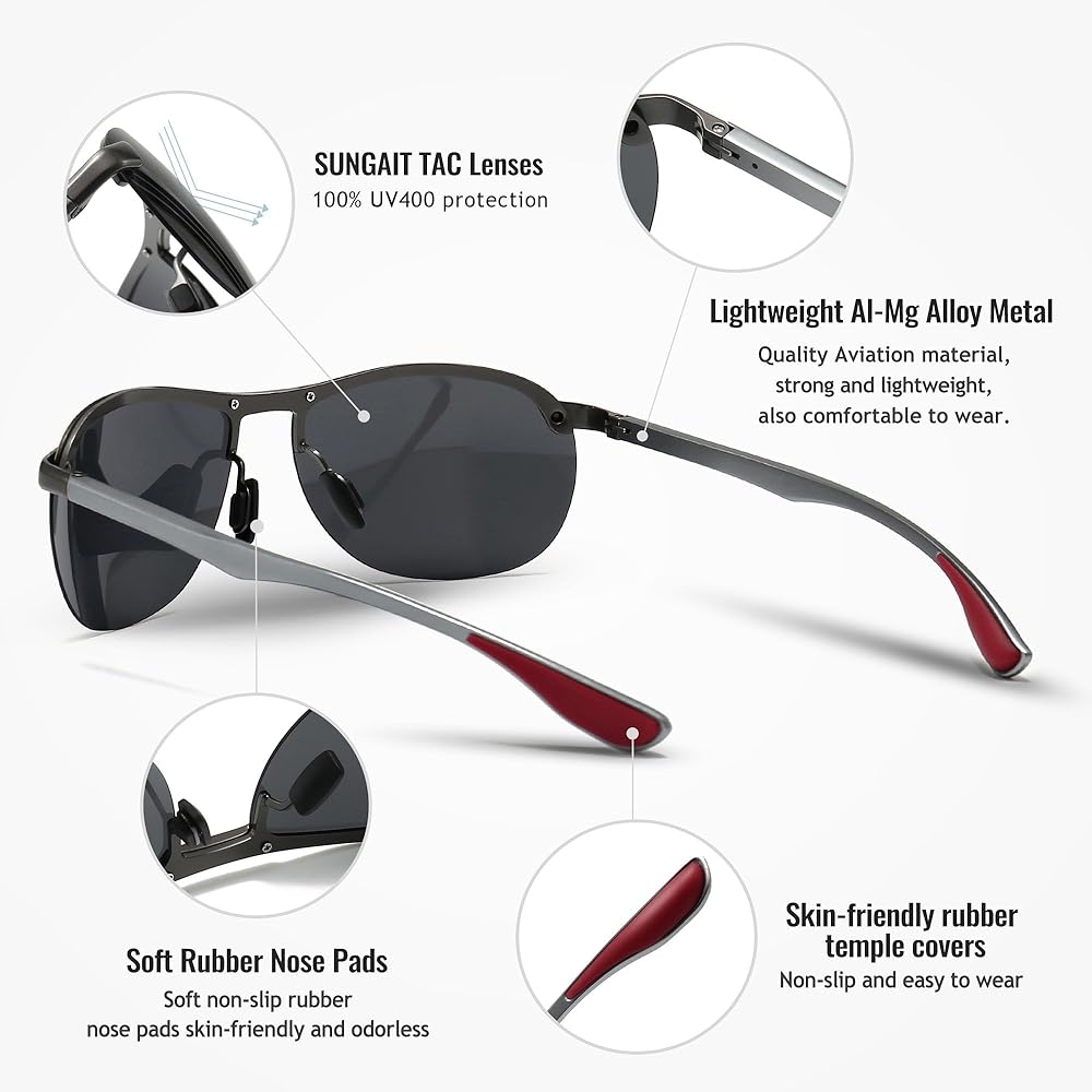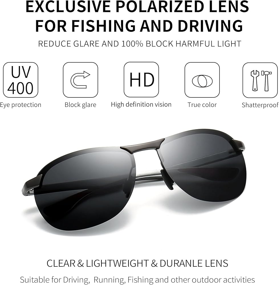 خفيفة الوزن ومتينة - هذه النظارات الشمسية مصنوعة من سبيكة معدنية Al-Mg، وهي خفيفة الوزن ومتينة ومقاومة للتشوه. مثالية للقيادة وركوب الدراجات والجري والتسوق والتقاط الصور وصيد الأسماك والغولف وغيرها من الأنشطة الخارجية.