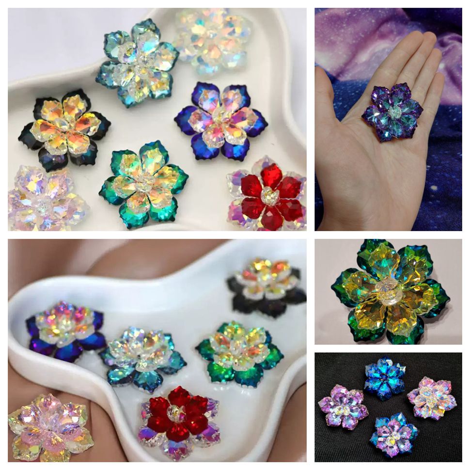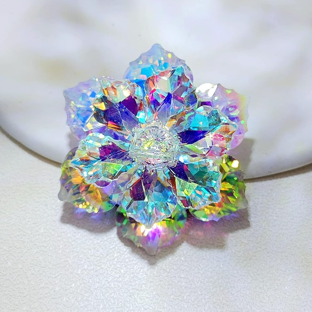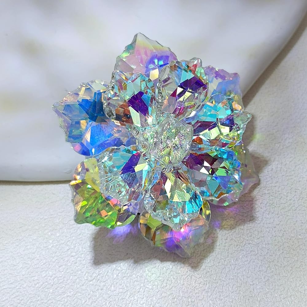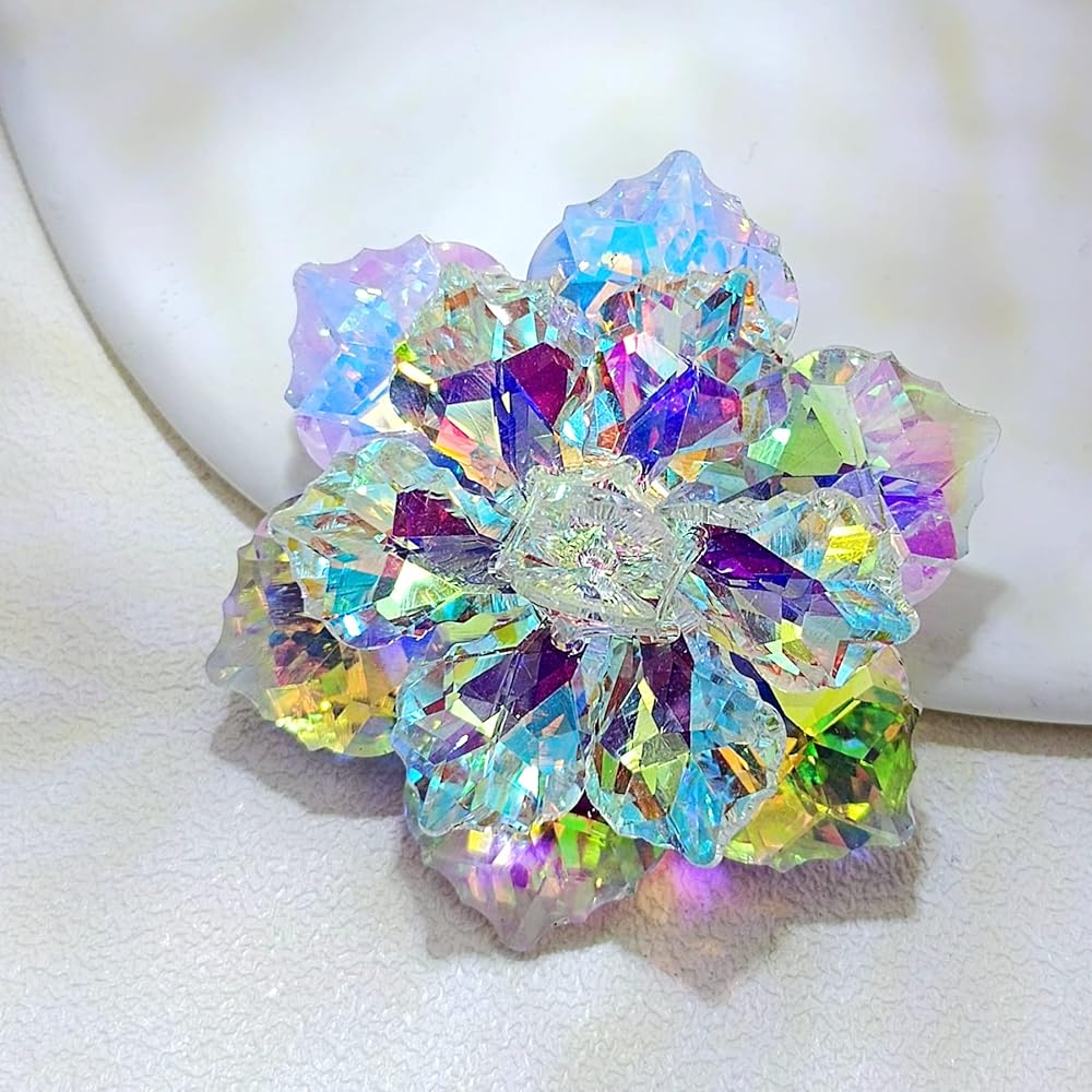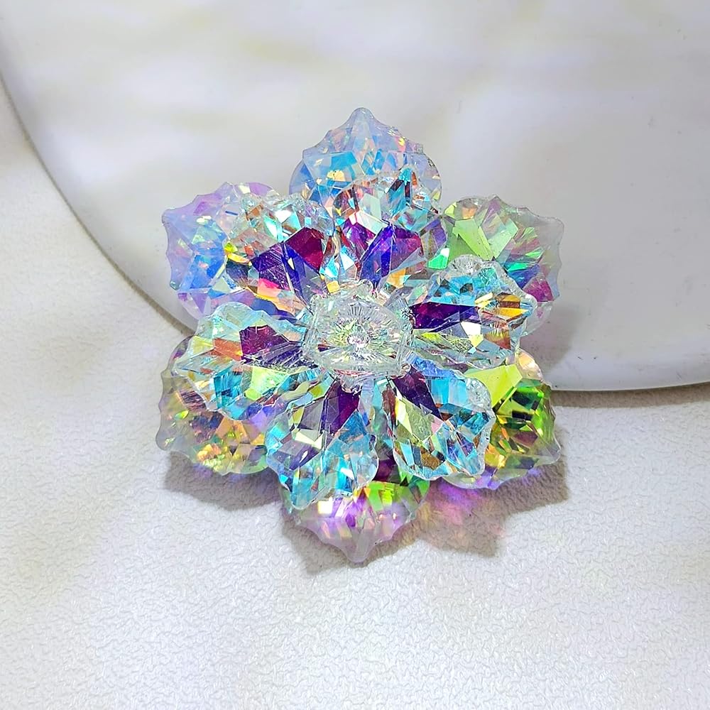 سيبينا دبوس رائع مزدوج الطبقات من حجر الراين اورورا بورياليس فيتريل الزهور، مجوهرات ملونة بالوان قوس قزح، خليط معدني من الستيل والكريستال, سبيكة صلب, كريستال