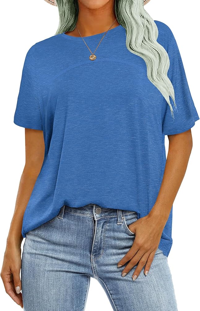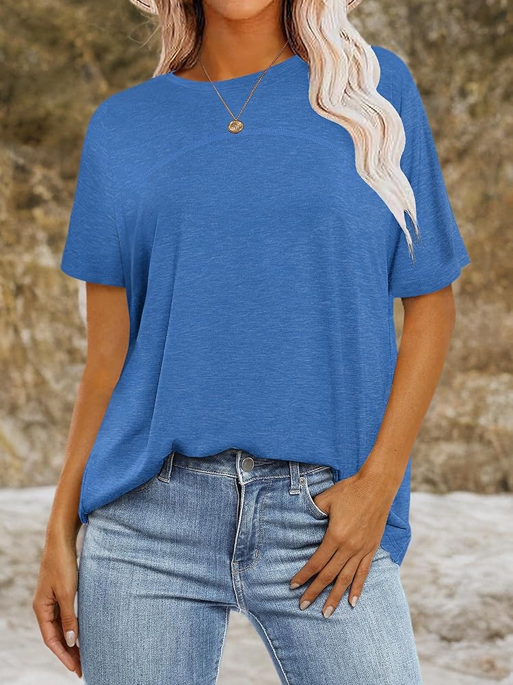 - طراز كاجوال فضفاض، قمصان قصيرة الأكمام، رقبة دائرية، لون موحد، قمصان علوية للسيدات، عصرية وأنيقة.