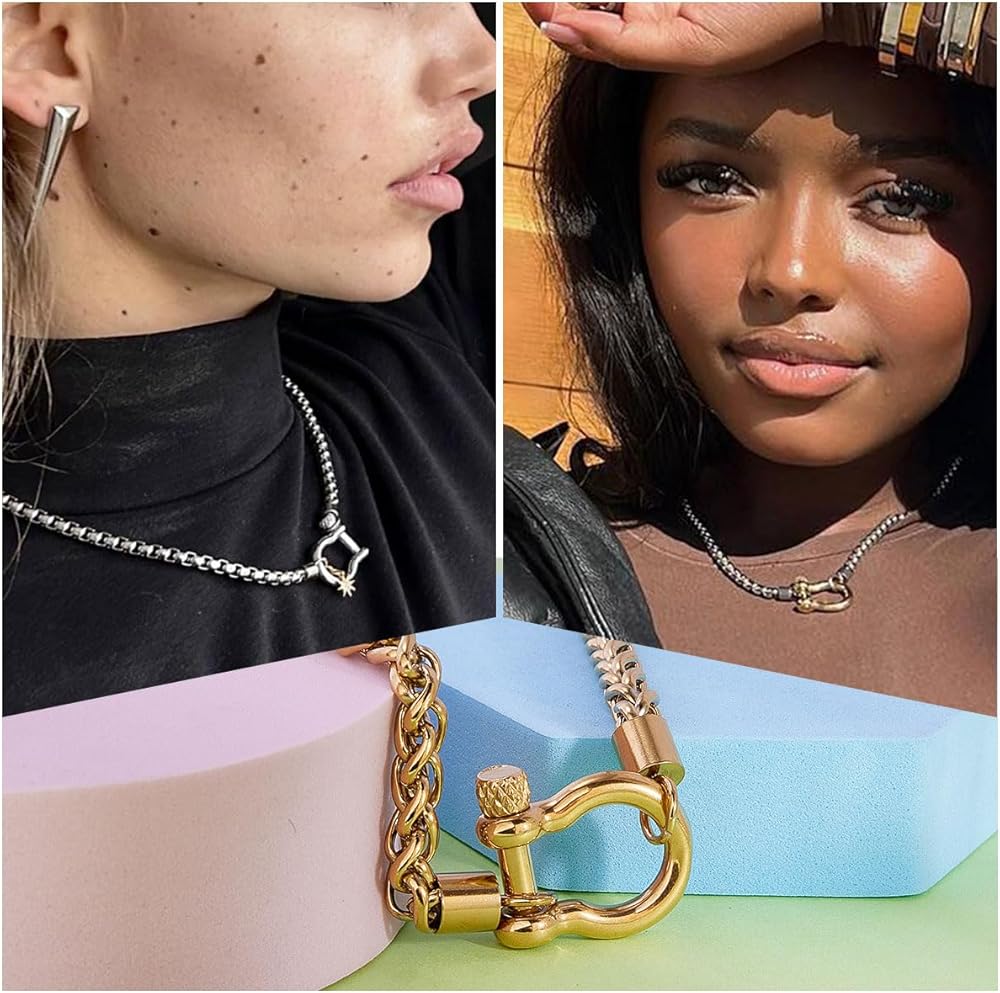 • 🔒A modern and versatile design with the anchor shackle clasp (1 inch X 0.86 inch) choker necklace will add a stylish and edgy look.