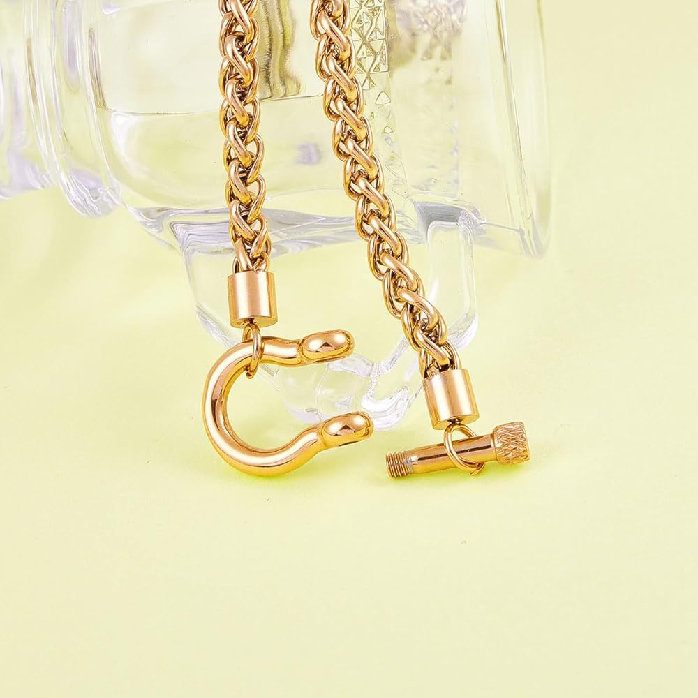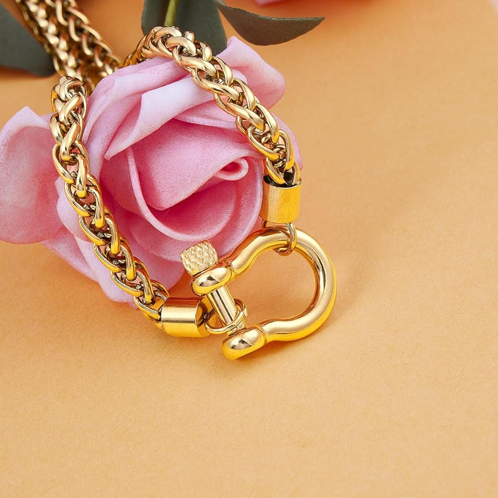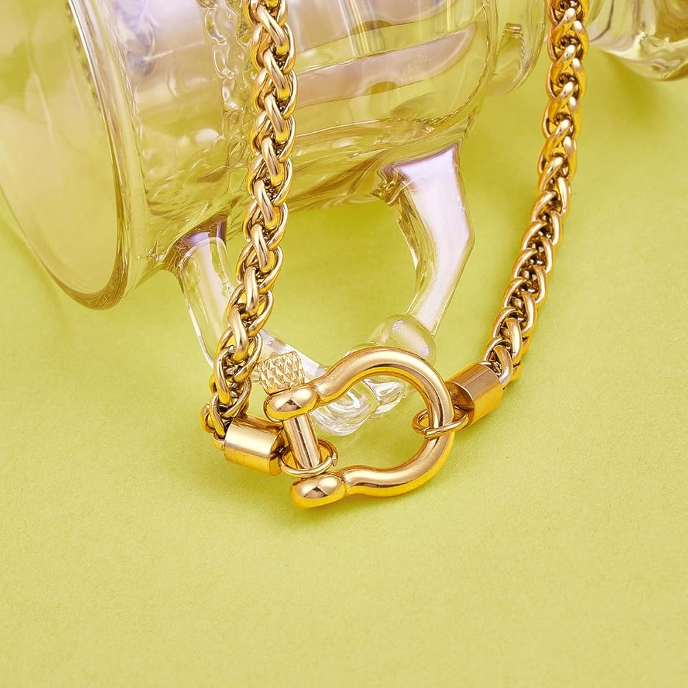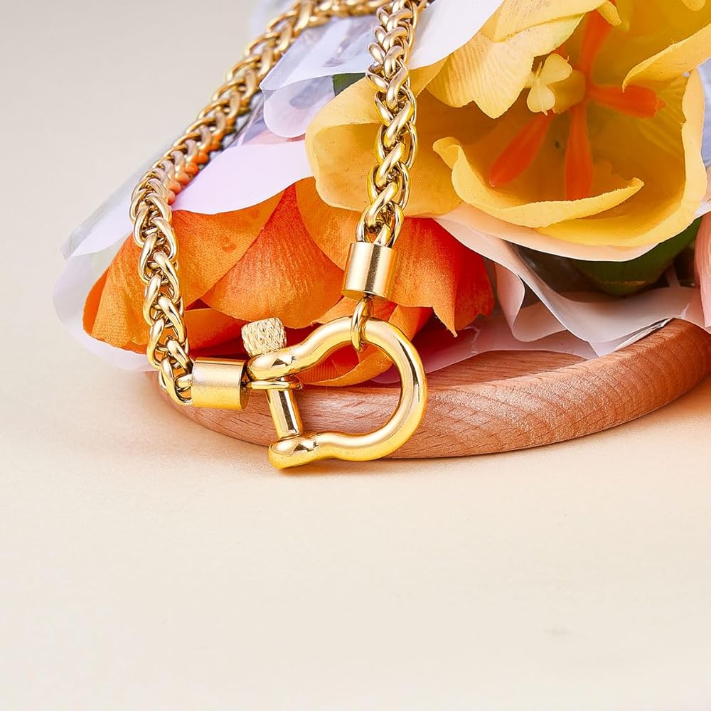 Wolentty Heavy Screw Anchor Shackle Wheat Necklace Foxtail Chain Gift for Valentine's Day