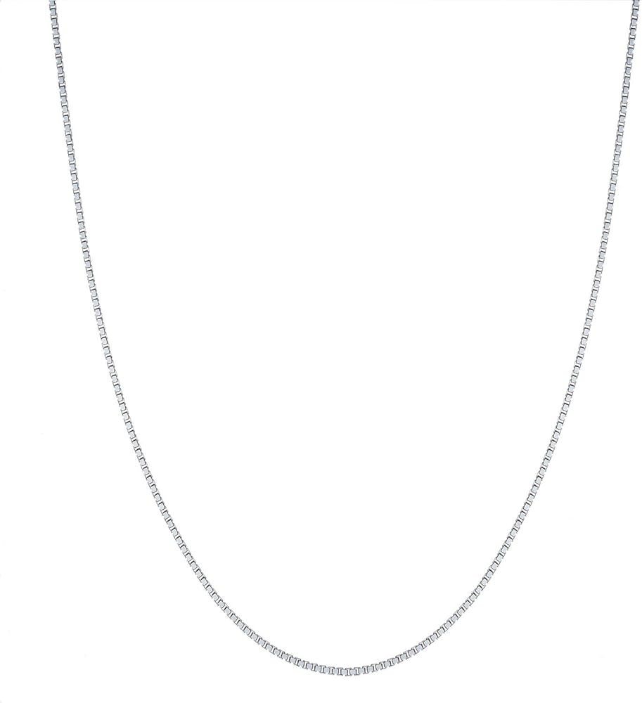 This classic box chain necklace is sturdy, yet lightweight and comfortable to wear. It measures approximately 1.2mm thick, and is made in Italy with the finest standards of craftsmanship, using only solid 925 genuine sterling silver. It has a bright silver finish that only solid sterling silver can provide. Each chain is stamped 925 and ITALY for authenticity, and is secured with a durable lobster claw clasp. Our prices are the lowest you will find anywhere because our chains come direct from the Italian manufacturer! Available in a wide variety of sizes from 16" - 30". Select your desired length from the drop down list.
