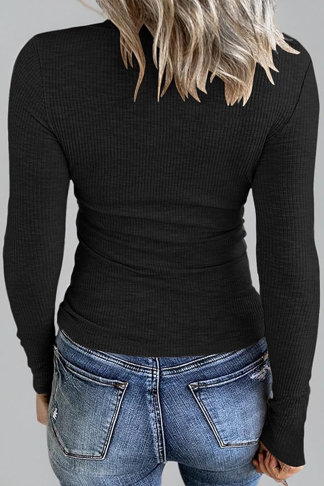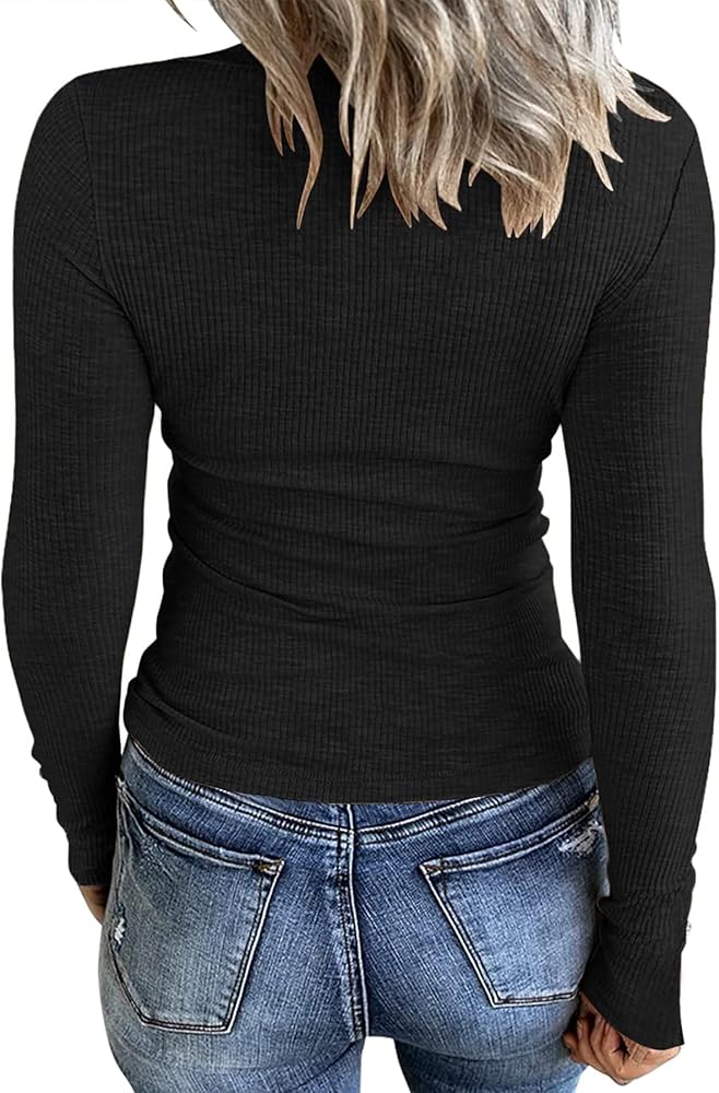 FANGJIN Women's Long Sleeve Square Neck T Shirts Tops Tees Black X-Large, 1-black, XL