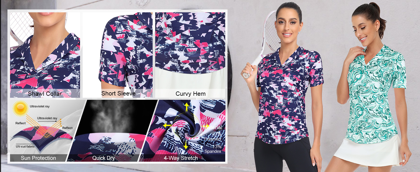 Flattering Fit for Every Body Type - The golf shirt features an curvy hem design that highlights your curves and flatter your figure.
