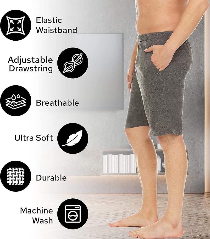 شورت بيجامة مريح للرجال - ابق دافئًا مع شورت البيجامة المريح للرجال. ليس هناك ما هو أكثر أهمية من الحصول على راحة كاملة والاستيقاظ مستعدًا لما يخبئه لك اليوم. مع شورت بي جي الرجالي، يمكنك تحسين جودة نومك والاستيقاظ وأنت تشعر براحة تامة. توفر لك سراويل البيجامة الرجالية لدينا أقصى درجات الراحة والتهوية، وهي مصنوعة من القطن بنسبة 100%.
