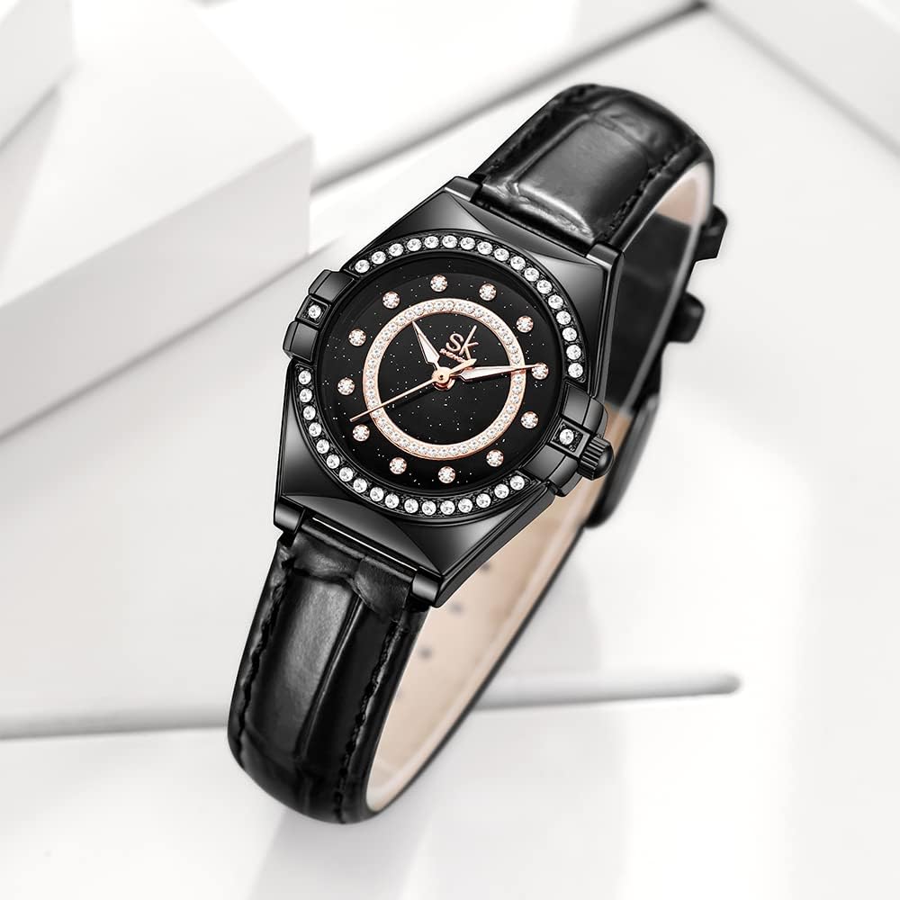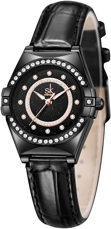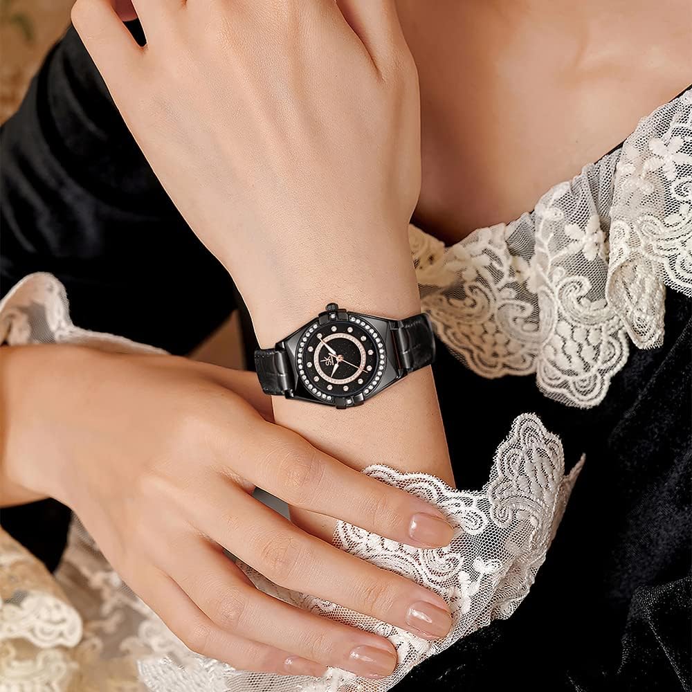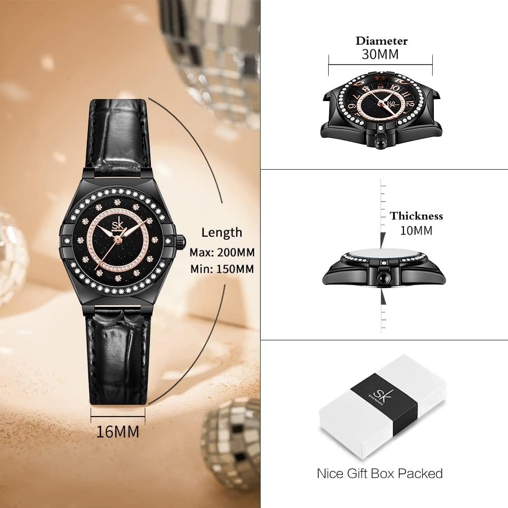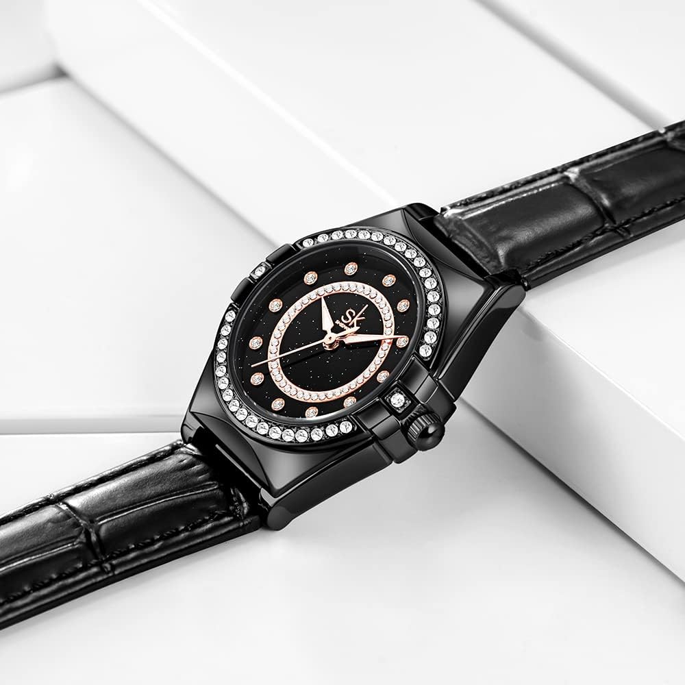 1. Luxurious Design: The watch case diameter is 30mm, made of zinc alloy material and coated with vacuum ion plating to ensure long-lasting and not easy to be discolor. The case and dial are inlaid with multiple layers of crystal diamonds, presenting a sparkling and luxurious effect.