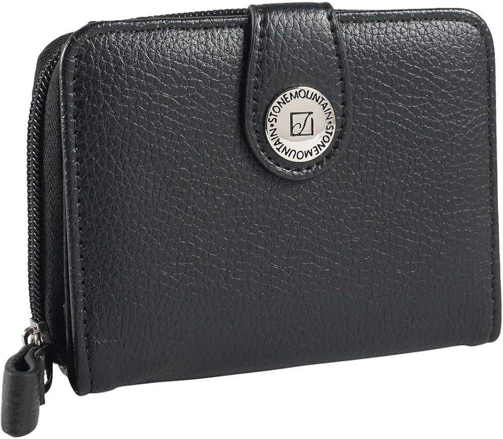 محفظة جلدية من Stone Mountain USA بسحاب صغير، باللون الأسود