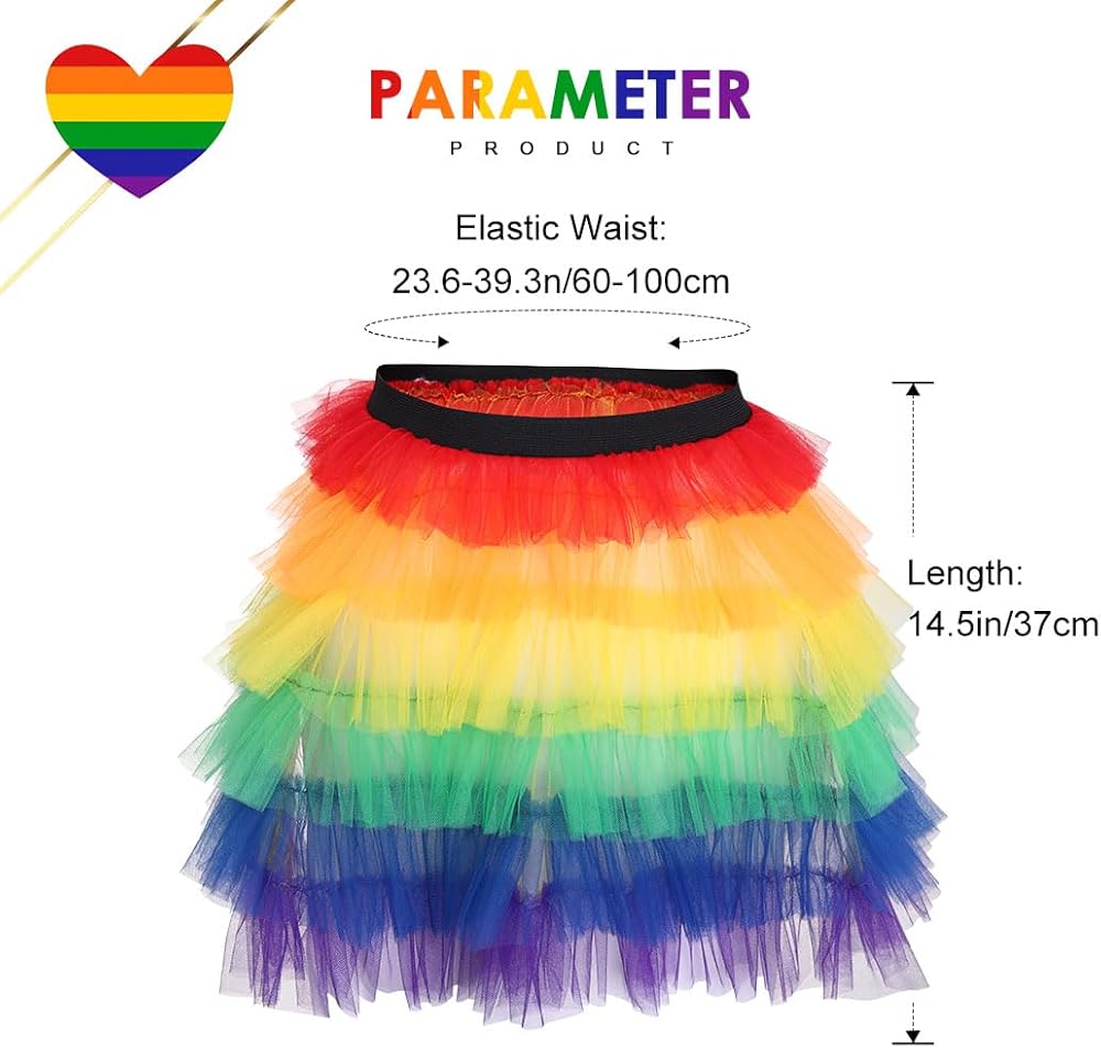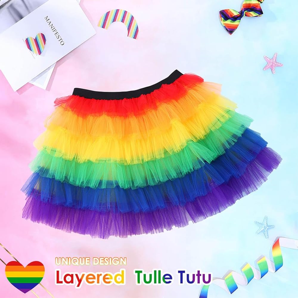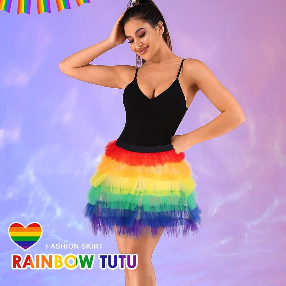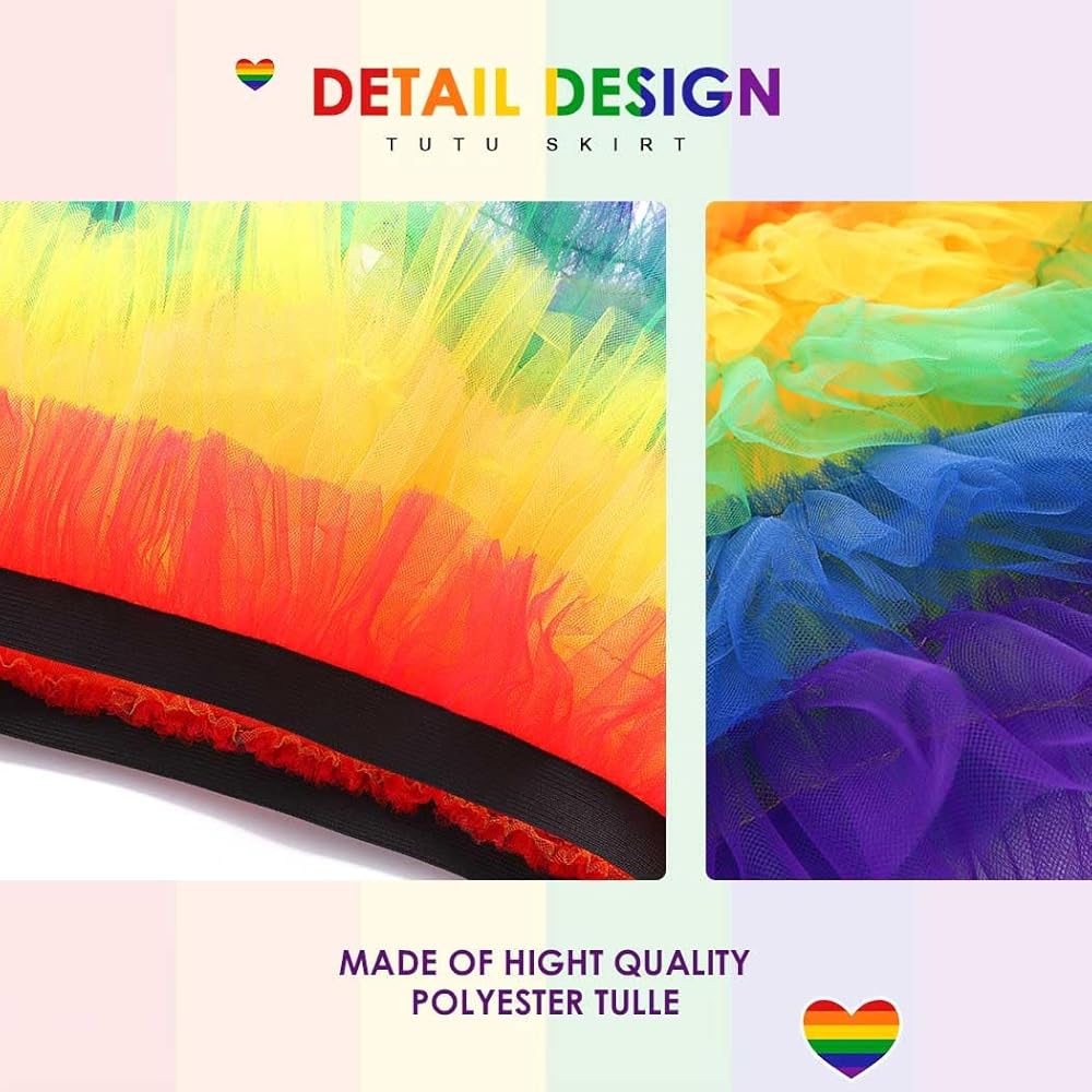 Colorful layered tutu are perfect for Pride Day, dance, ballet, costumes, dress up, rave parties, run race, color day and can be easily mixed and matched.