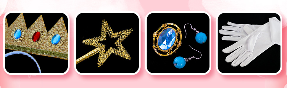 • 【العبوة متضمنة】 فستان وردي*1، عصابة شعر على شكل تاج الأميرة*1، بروش من حجر الراين قابل للإزالة*1، عصا الأميرة*1، أقراط*زوج واحد، قفازات الأميرة*زوج واحد.