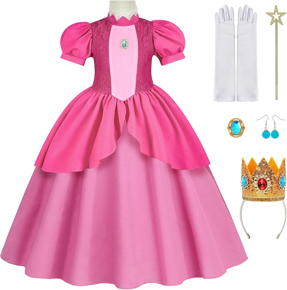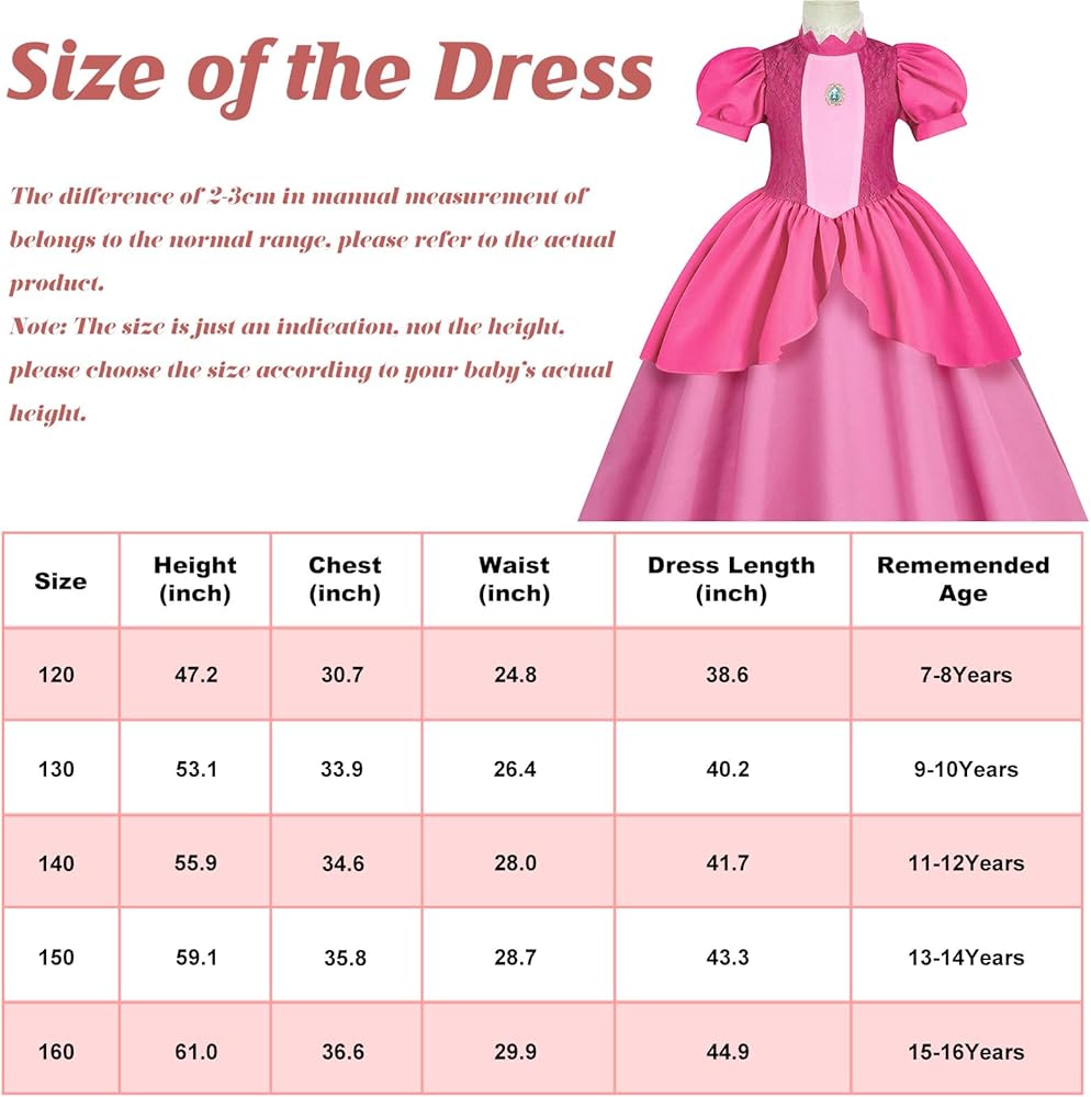 زي الأميرة الخوخ للفتيات، فستان الأميرة الخوخ للأطفال 6 7 8 9 10 11 12 سنة أزياء الهالوين التنكرية