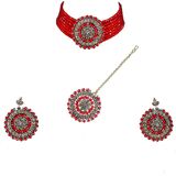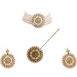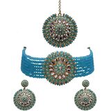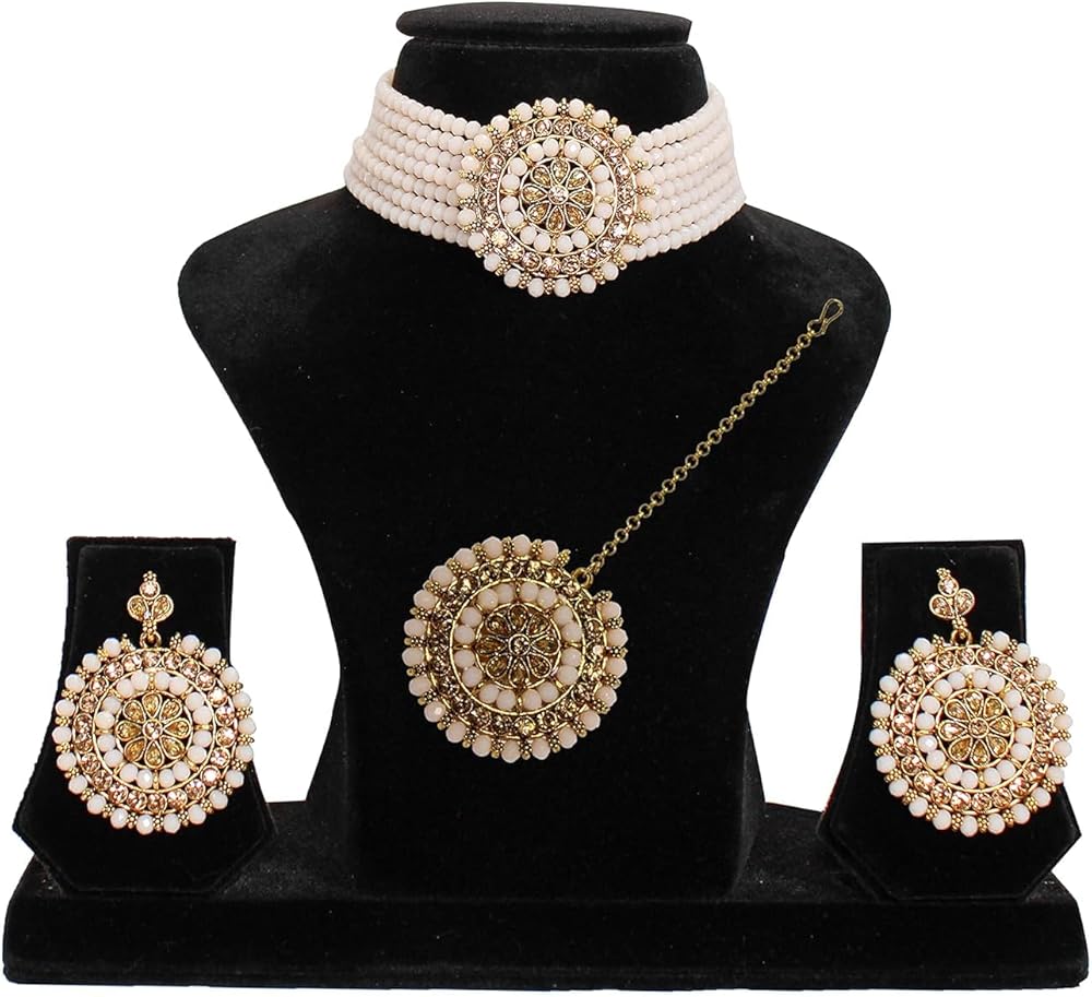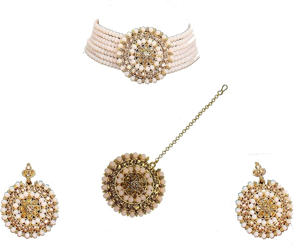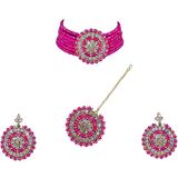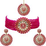 Complete Set: This ensemble includes a choker necklace, matching earrings, and a maang tikka, ensuring a coordinated and comprehensive look.