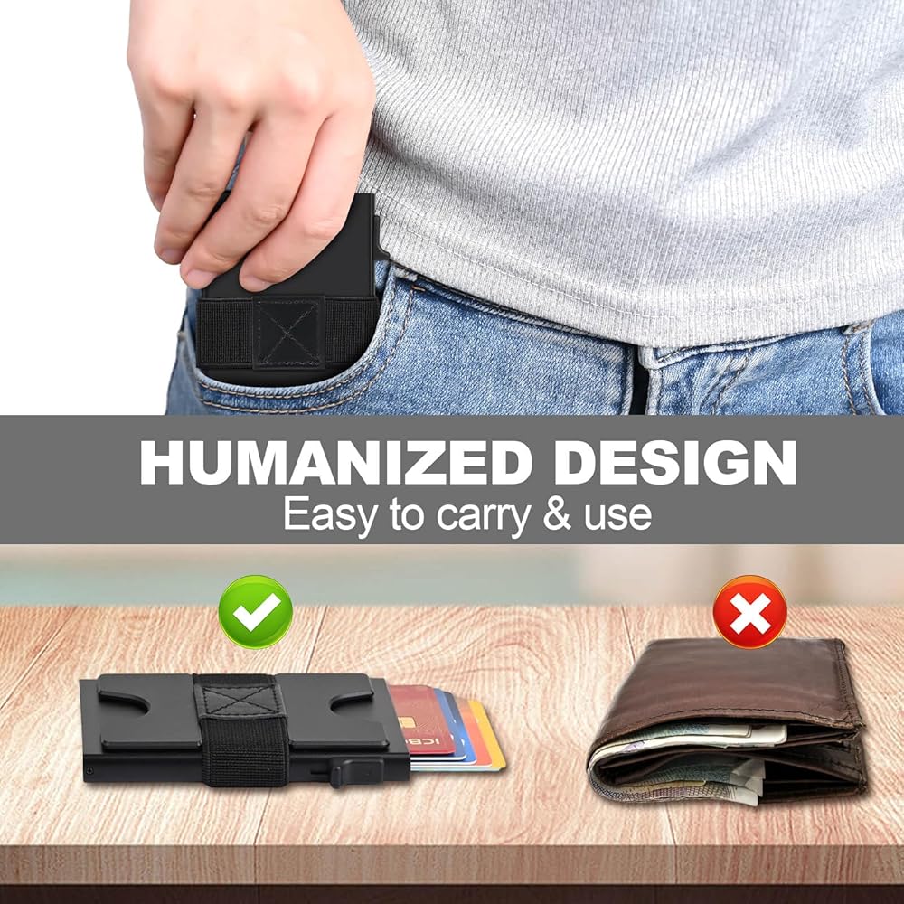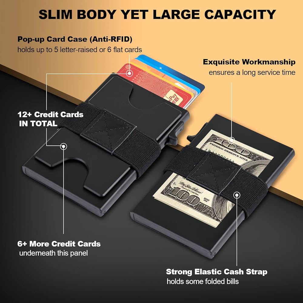 【محفظة صغيرة الحجم للغاية وآمنة】 محفظة UpLook المصنوعة من الألومنيوم مدمجة ومتينة، وتناسب تمامًا الجيب الأمامي أو الخلفي، بقياس 3.8 × 2.8 × 0.6 بوصة، وتزن 2.8 أونصة فقط، مريحة للحمل كل يوم.