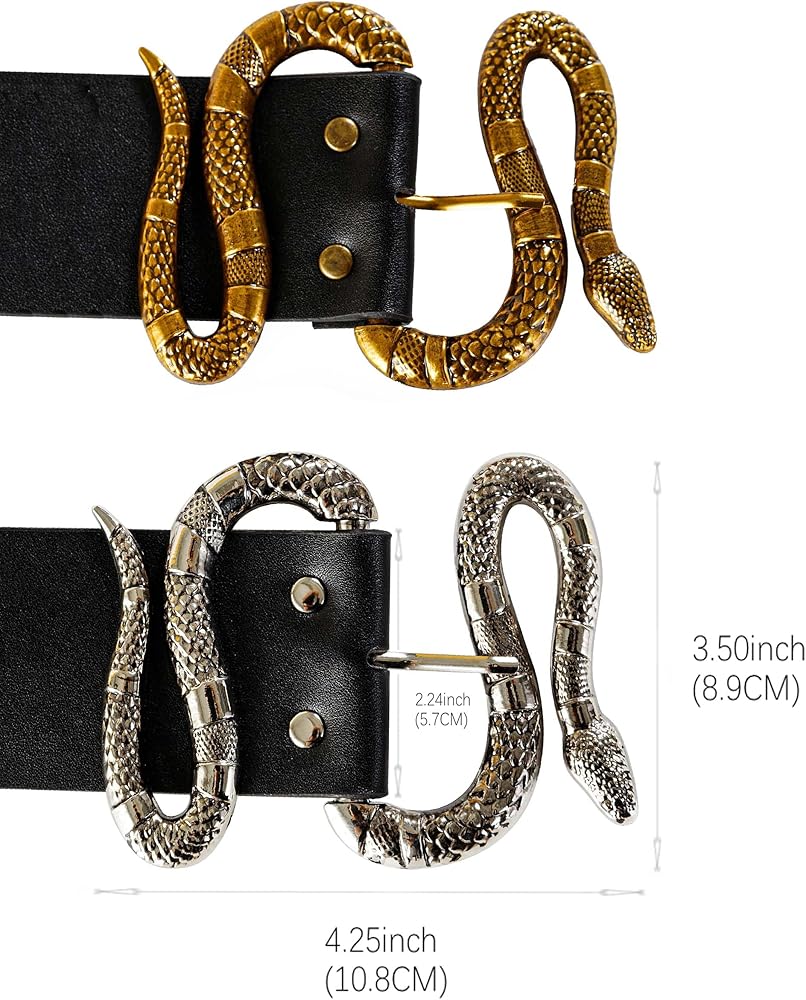 - إبزيم بتصميم ثعبان كبير ورائع، مقاس 4.3 بوصة × 3.5 بوصة.