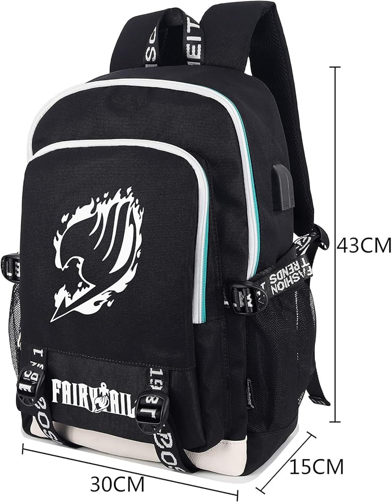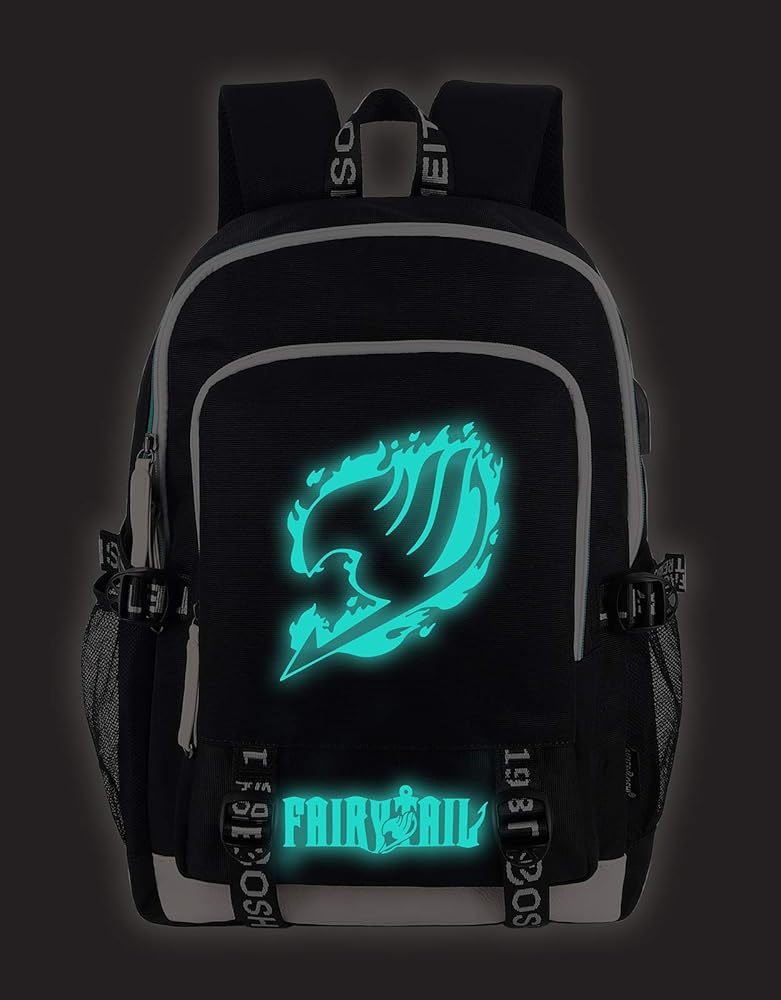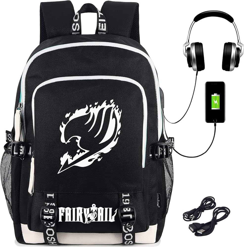 حقيبة ظهر روفاتايد أنيمي مضيئة مطبوعة كلية مدرسة حقيبة كمبيوتر محمول مع منفذ شحن USB ومنفذ سماعة رأس