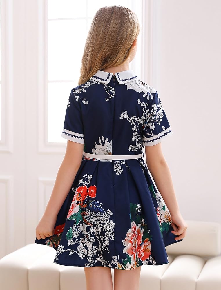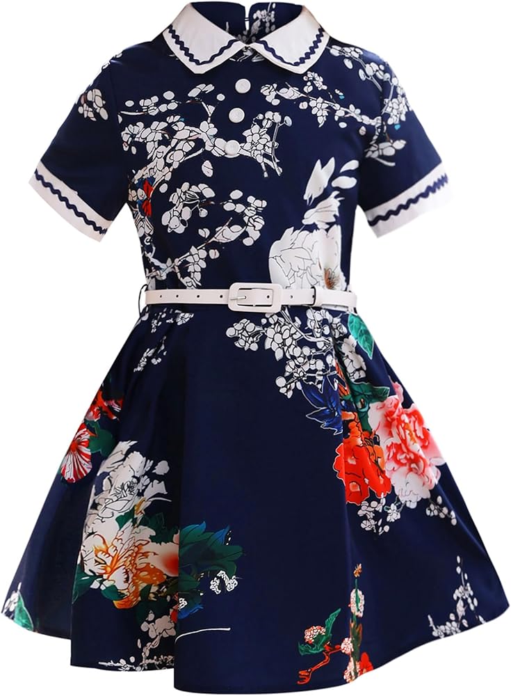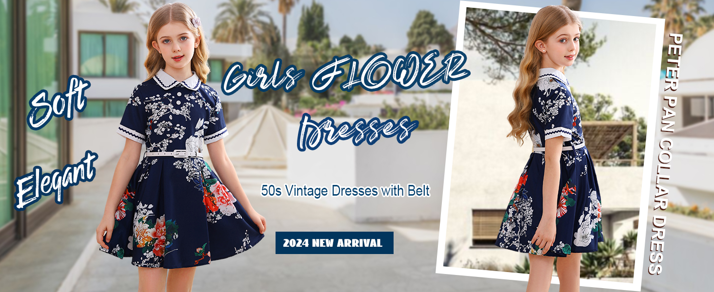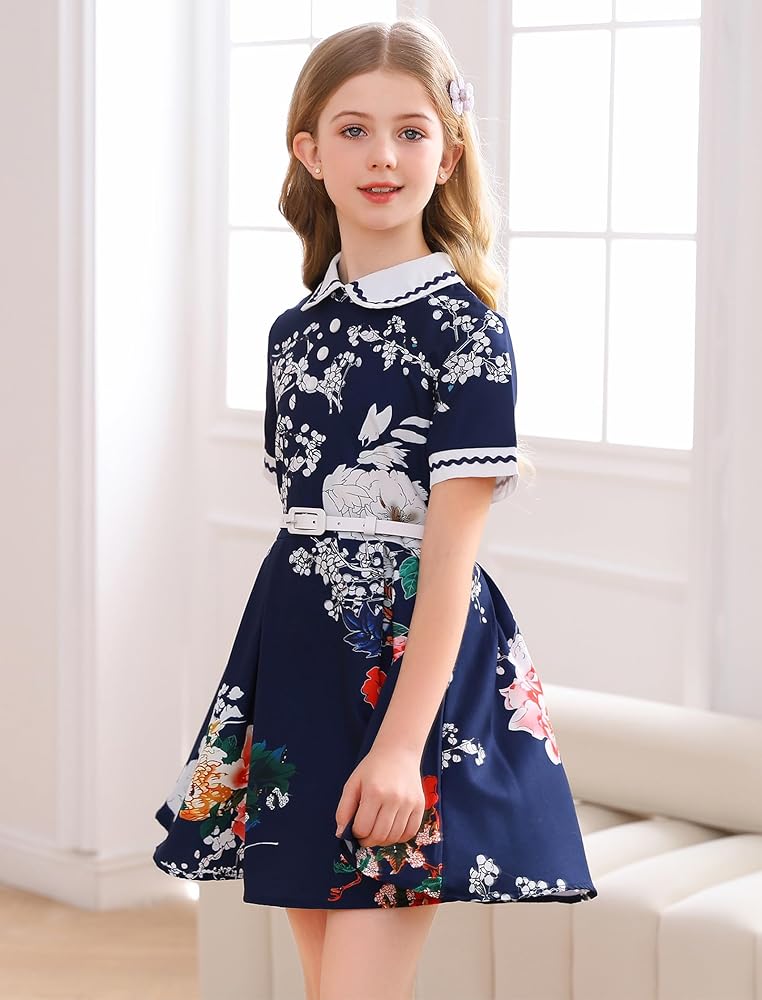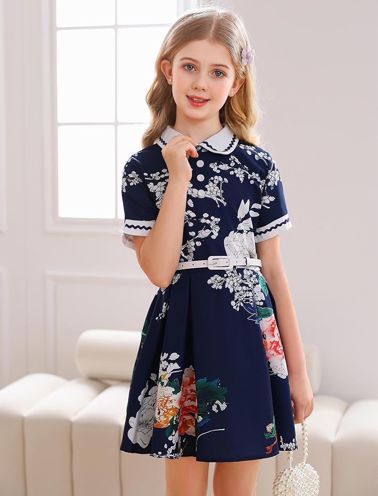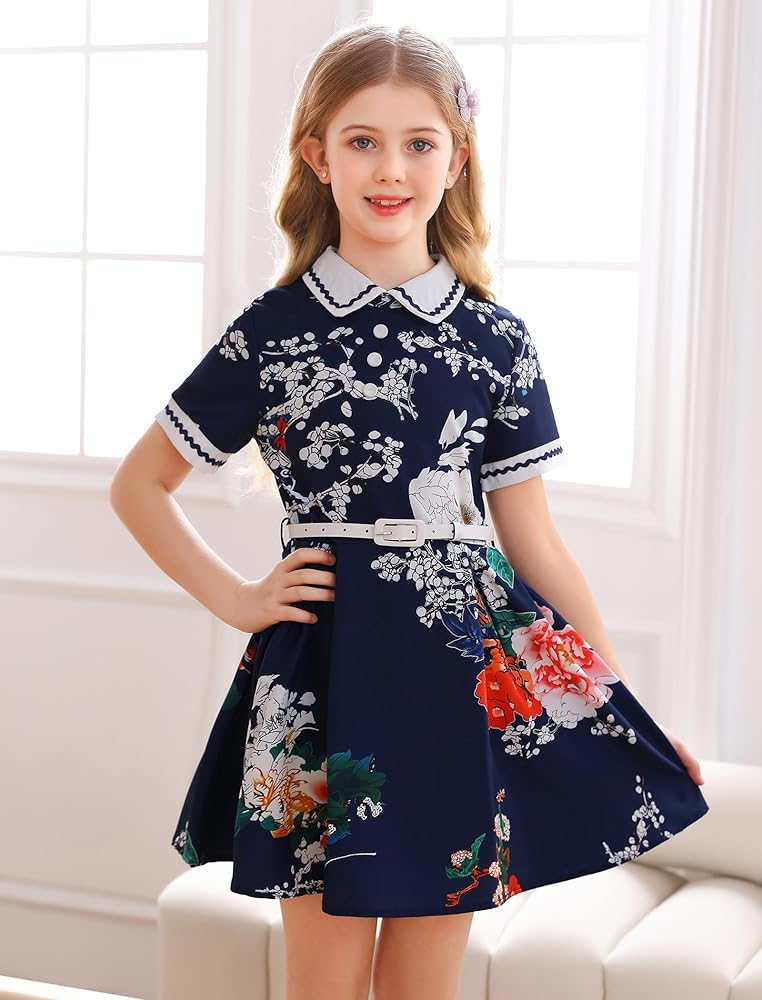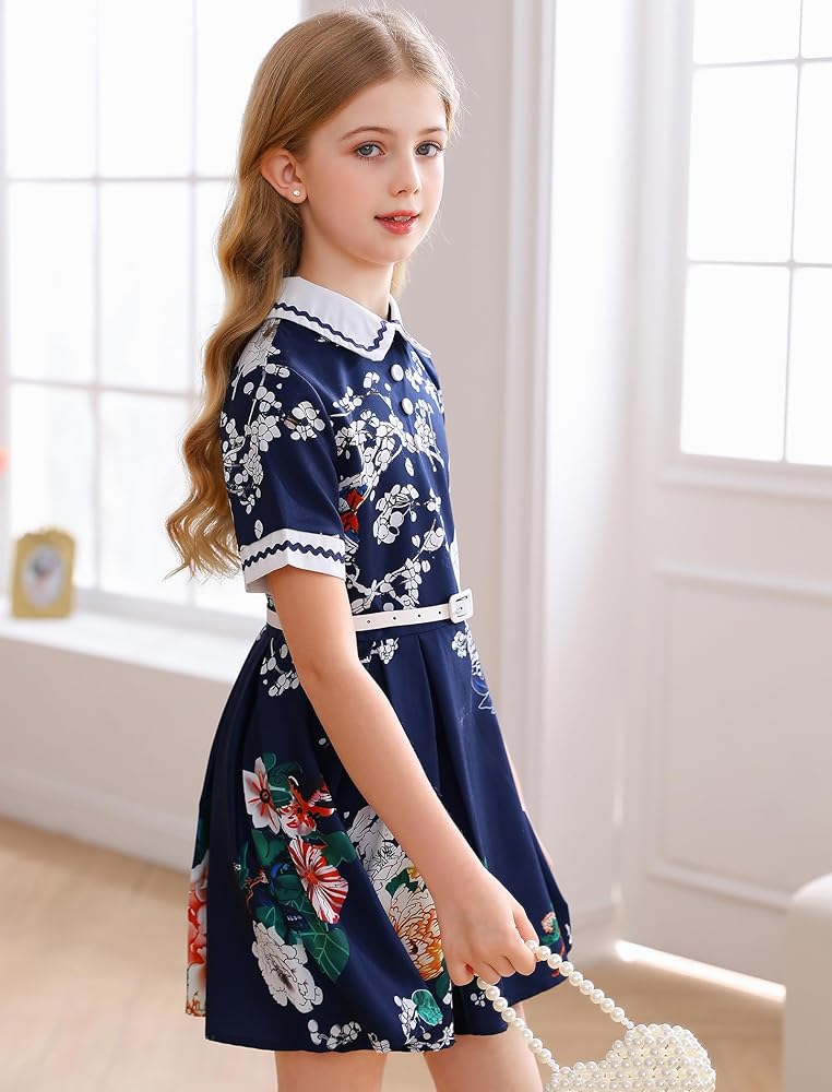 ☕التصميم: فستان بناتي كلاسيكي بتصميم ياقة دمية بيتر بان، تتوفر أكمام قصيرة وأنماط بدون أكمام، سحاب خلفي للإغلاق، مع حزام قابل للفصل، خصر نحيف، تنورة بطول الركبة على شكل حرف A، انسيابية وأنيقة، ستجعل مظهرك فتاة صغيرة تبدو أنيقة ورائعة.
