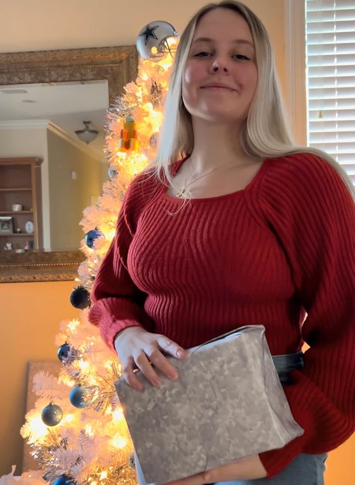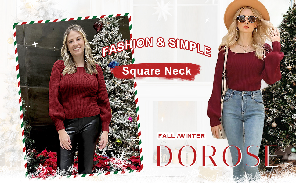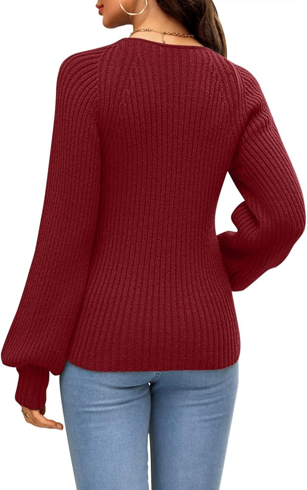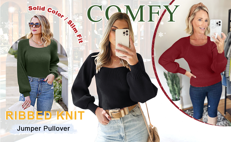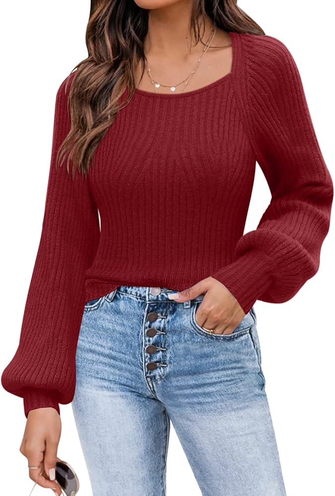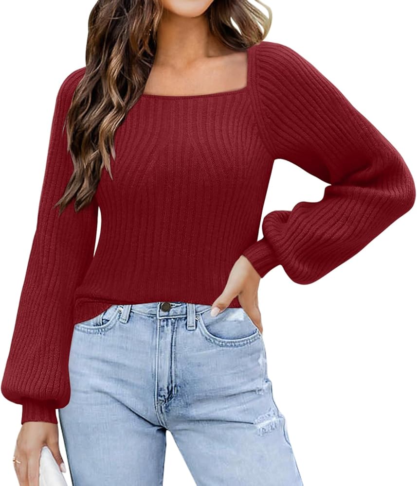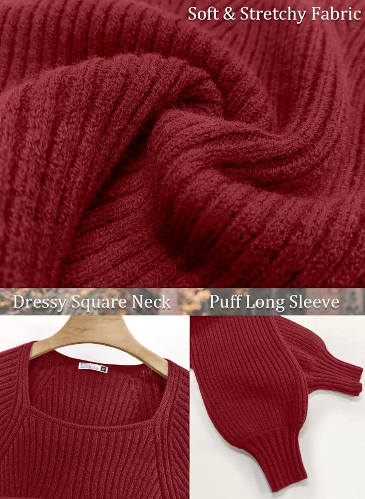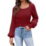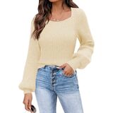 ✭ سترات بلوفر نسائية، أكمام طويلة منتفخة، رقبة مربعة مثيرة، لون موحد، خفيفة الوزن، سترة بأكمام بالون، لطيفة للغاية.