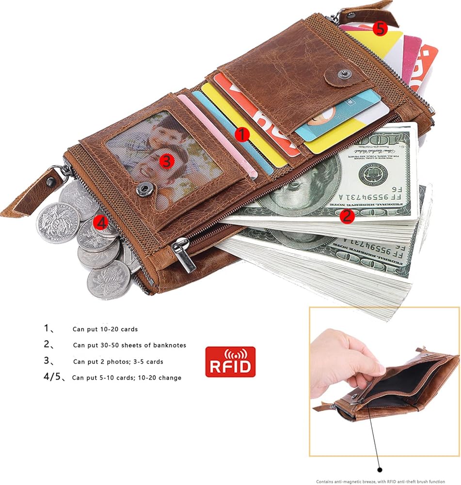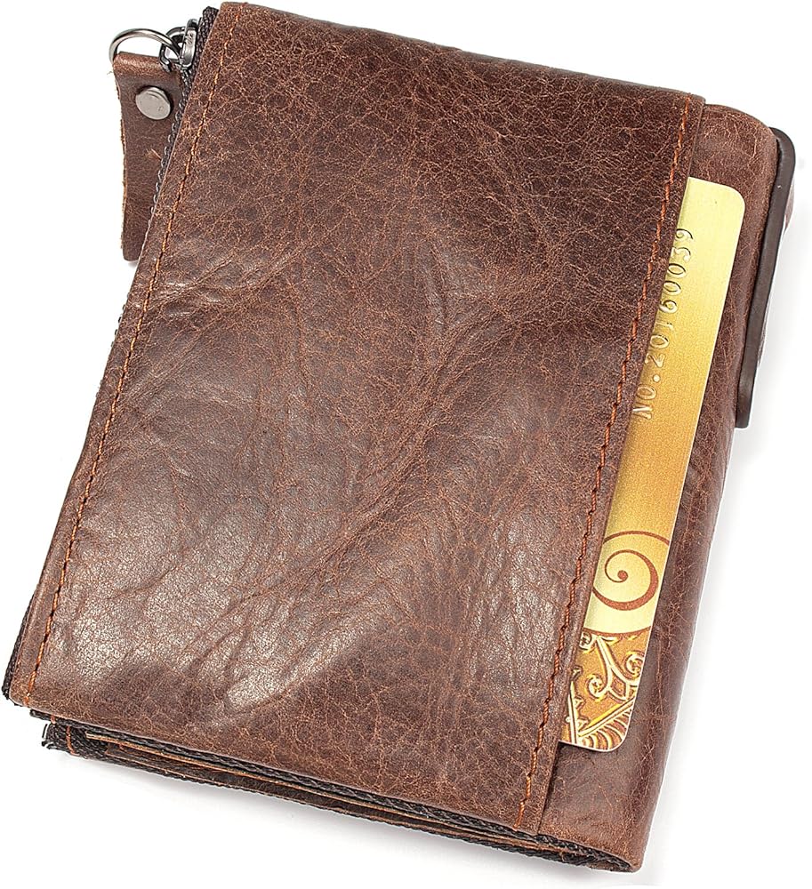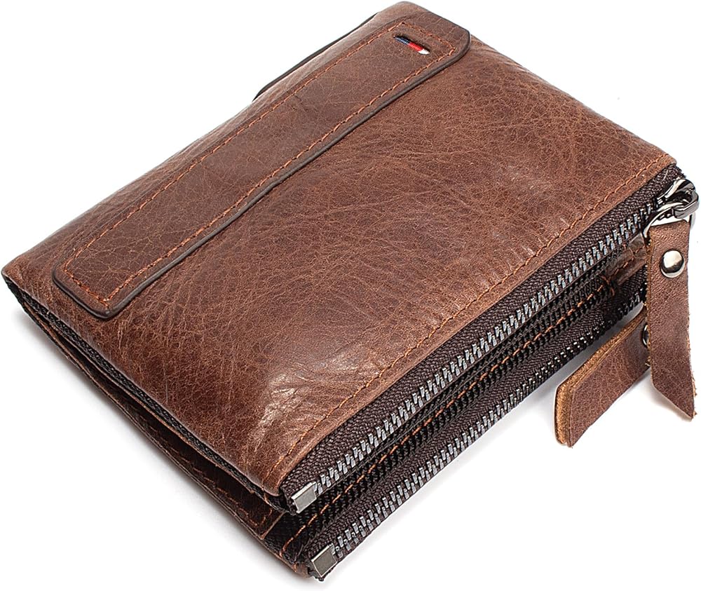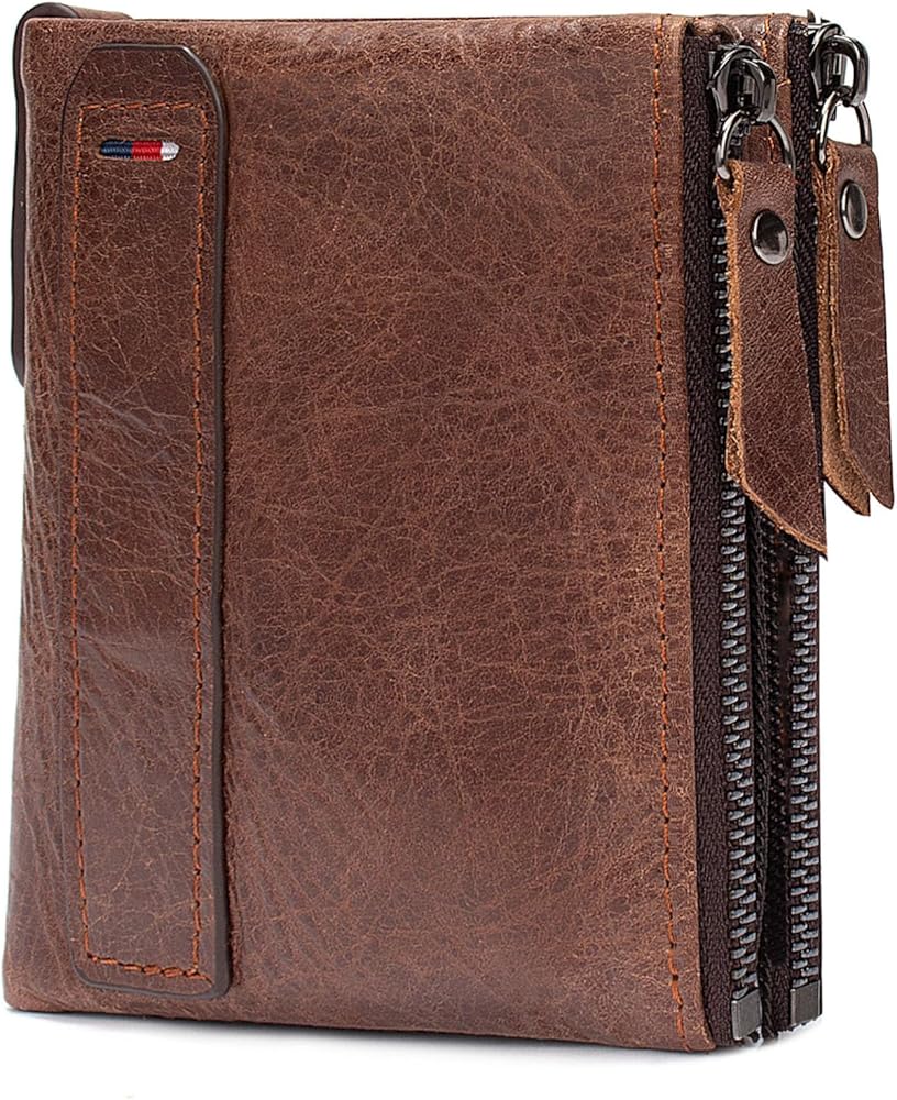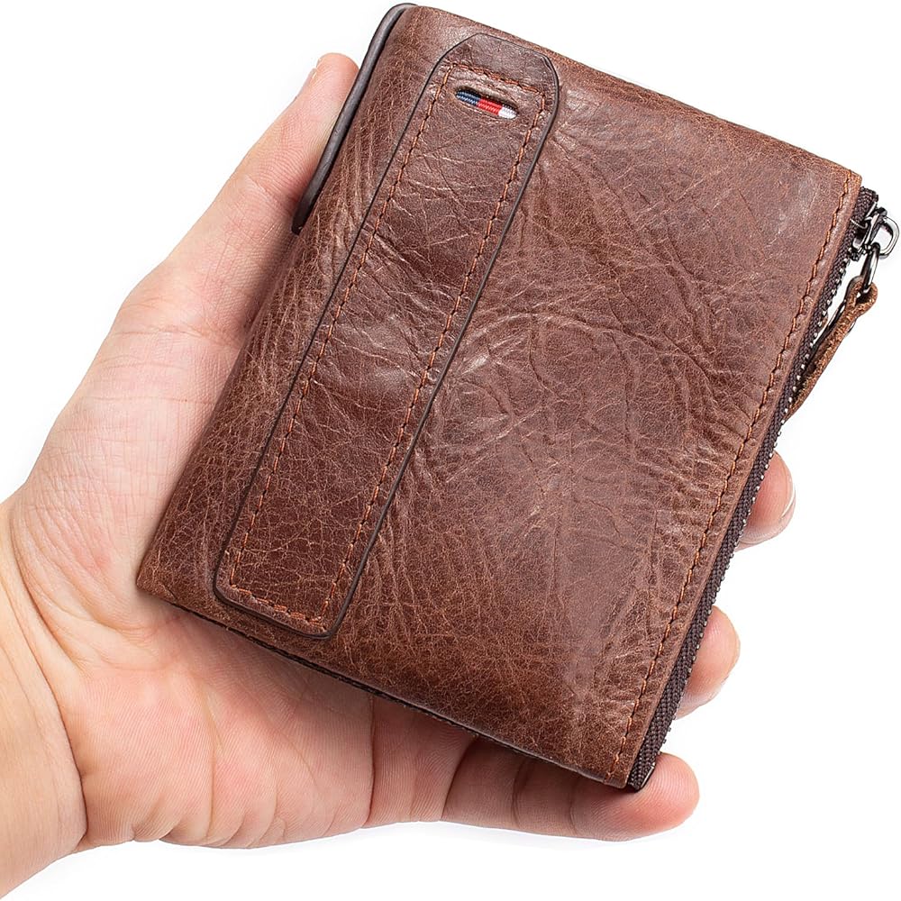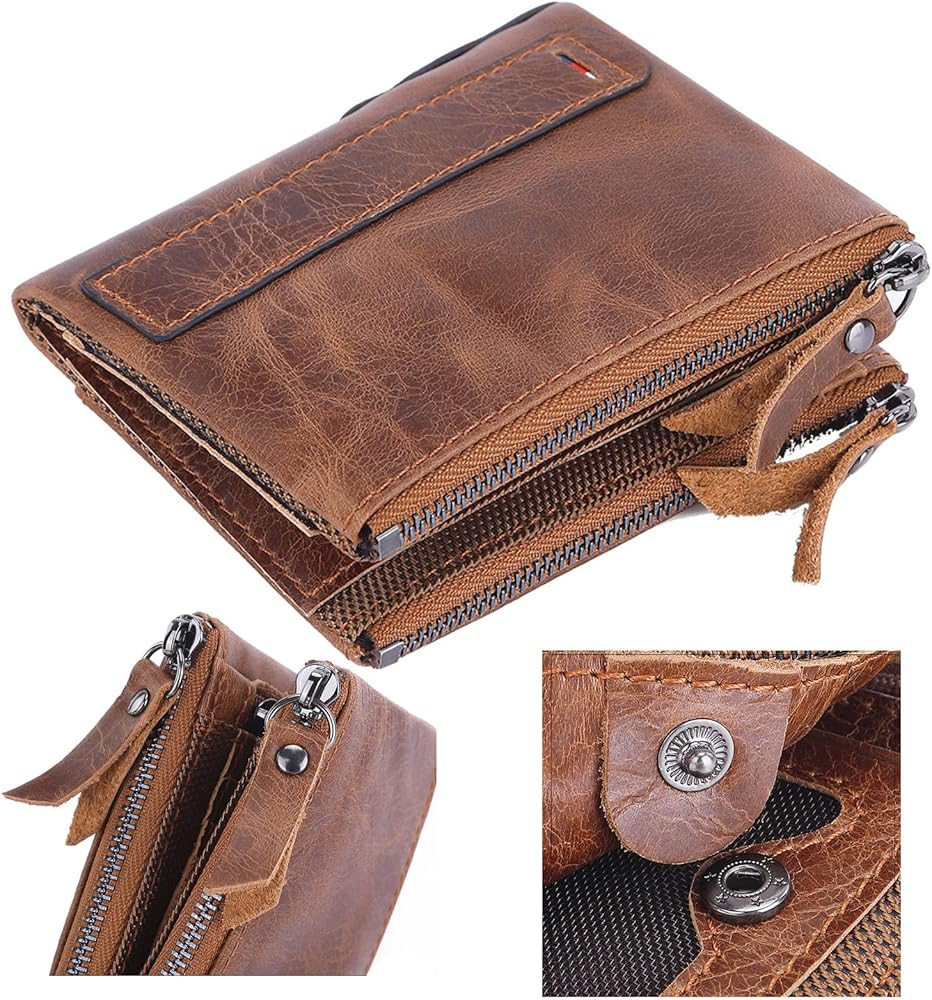 Wallet for Men Bifold Small Leather Wallets Zip Around Coin Pocket Cards Holder Rfid Blocking Short Purse
