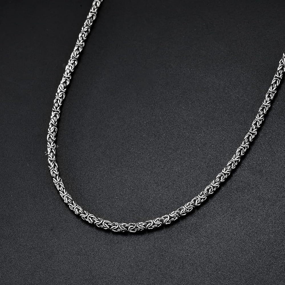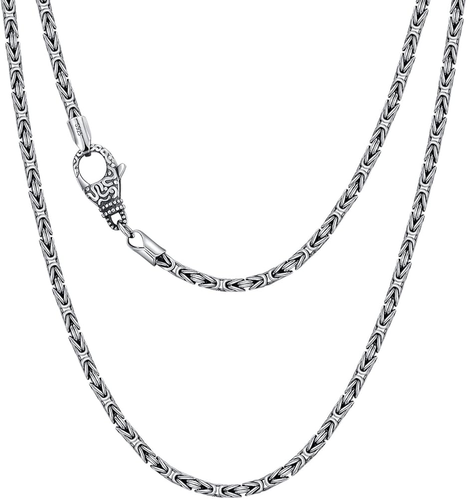 【قلادة سلسلة بيزنطية من الفضة الإسترلينية】 - قلادة السلسلة البيزنطية الإيطالية هي واحدة من أكثر إكسسوارات الموضة شعبية. باستخدام تكنولوجيا قطع الماس وعملية الأكسدة لجعلها تبدو أكثر لمعانًا ومتانة. تم تصميم السلسلة العتيقة الكلاسيكية لتوفير الراحة اليومية، ويمكن ارتداؤها بمفردها أو مع طبقات أخرى من القلائد على الفور لرفع مستوى مظهرك الكاجوال أو الرسمي.